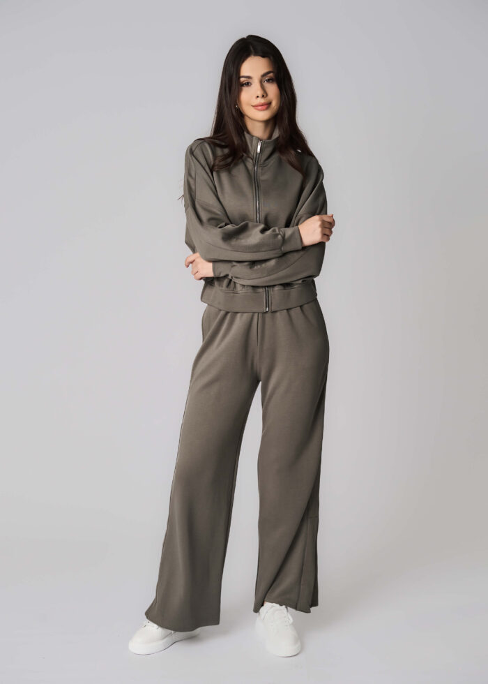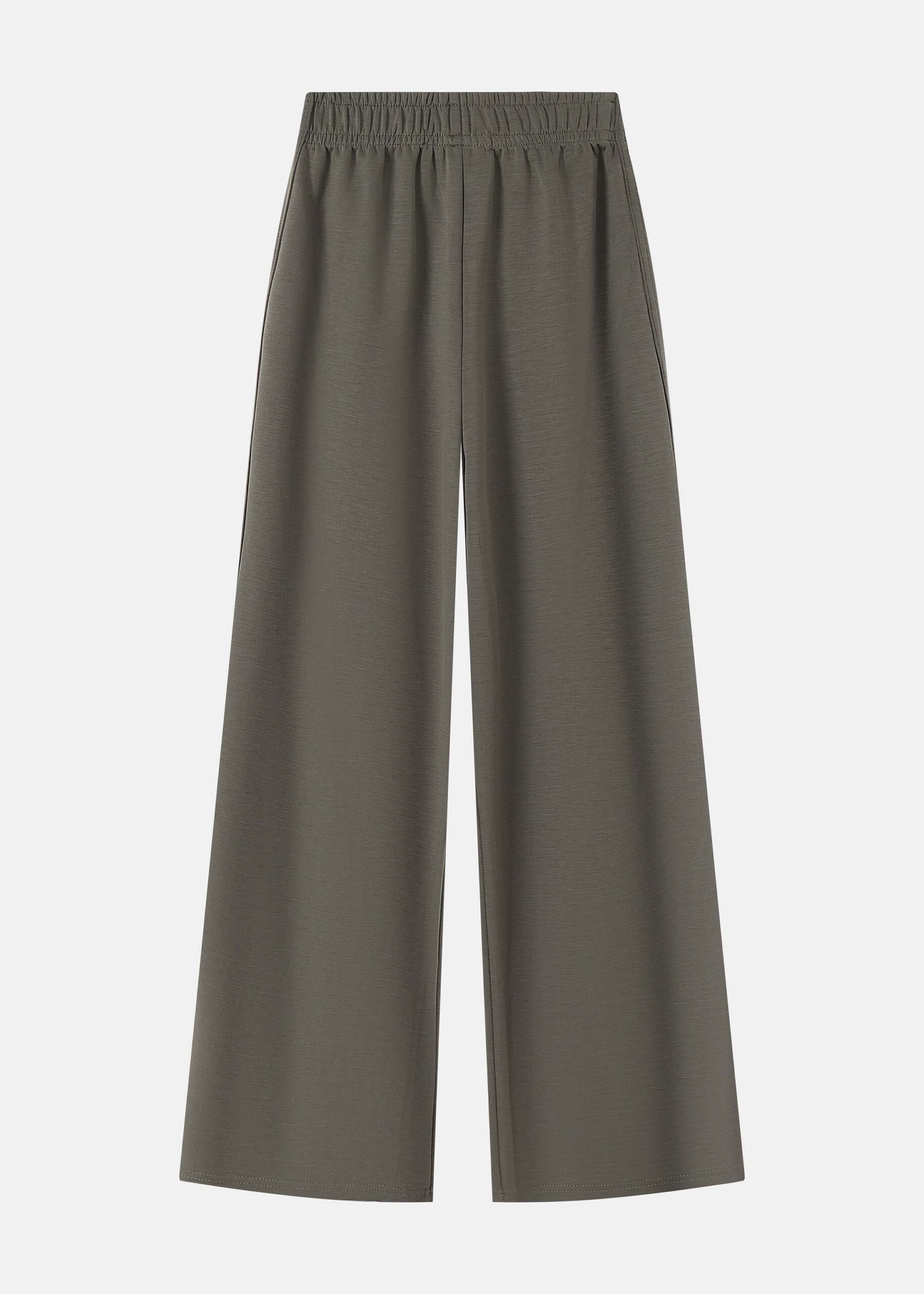 بنطلون نسائي, سادة, واسع, بنسيج السكوبا, خصر مطاطي, جيوب من الامام, فتحات جانبية مع ازرار, مريح وعملي