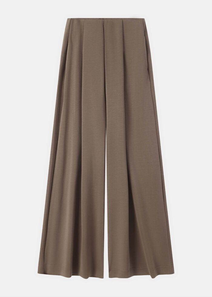 بنطلون نسائي, بنسيج السكوبا, wide-leg, كسرات من الامام, جيوب من الامام, خصر مطاطي, خصر عالي, انيق وعصري