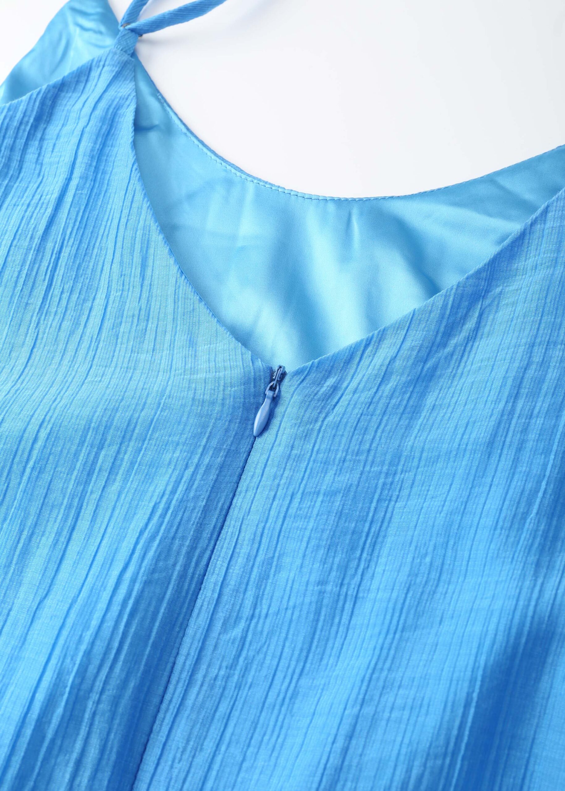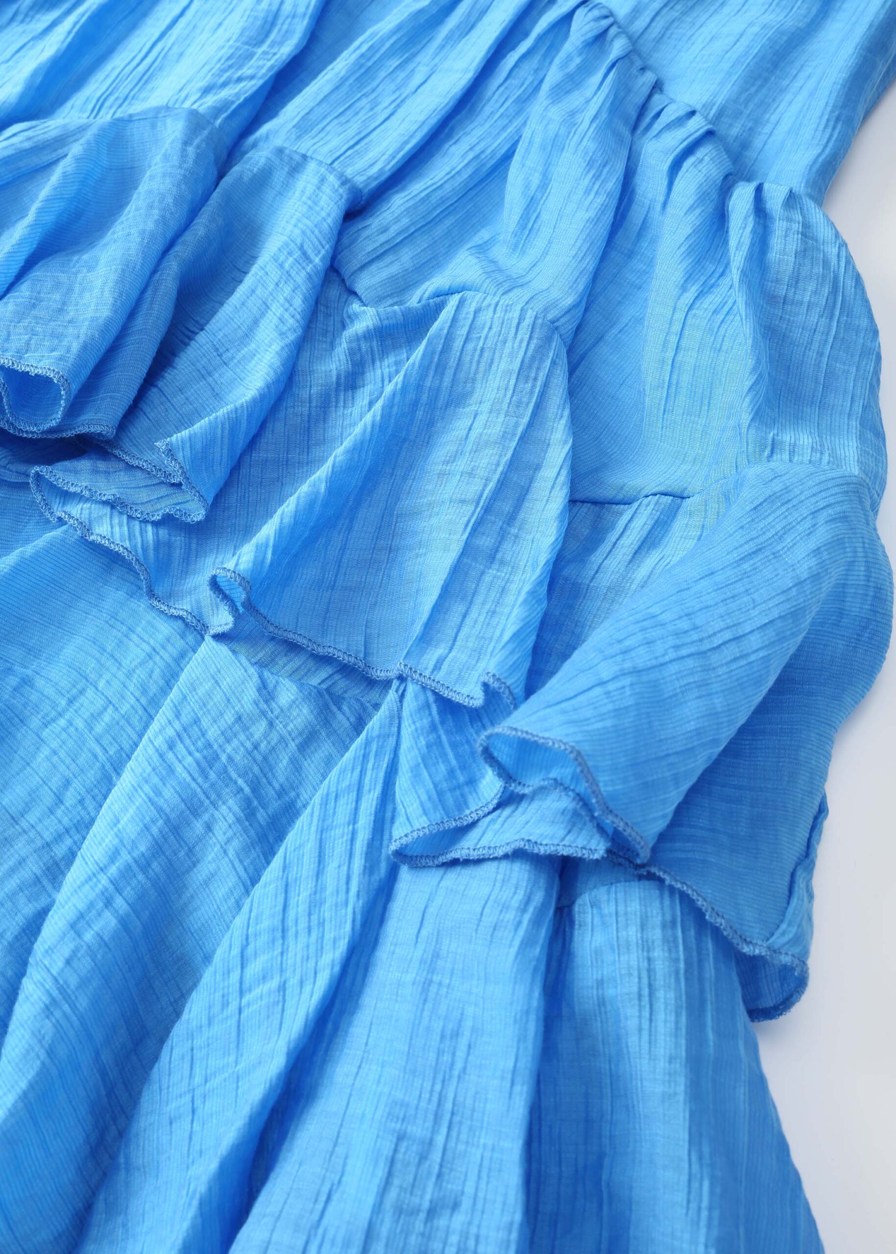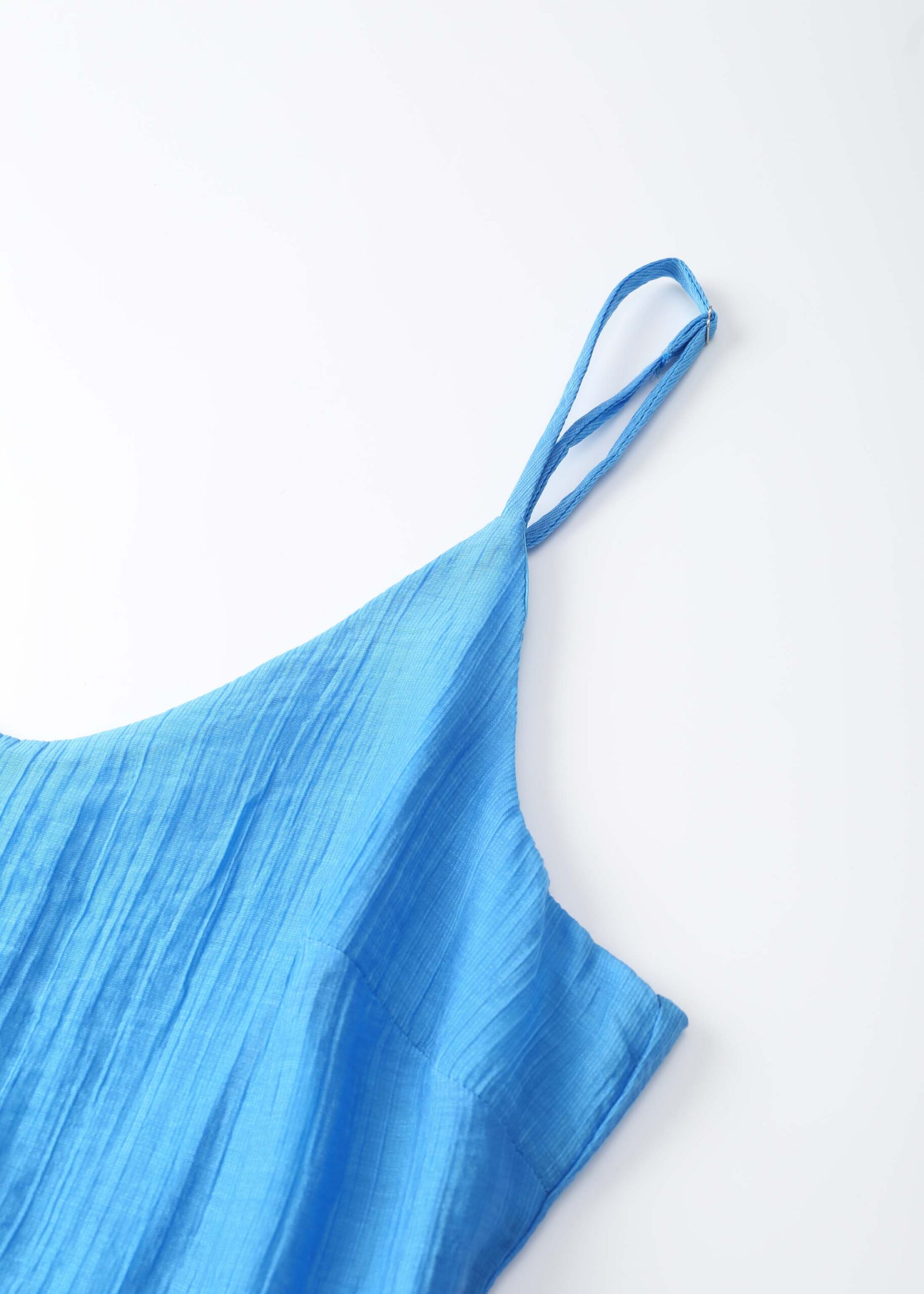 فستان نسائي, قصير, طبقات كشكش, ياقة مدورة, بدون اكمام, اشرطة كتف قابلة للتعديل, سحاب من الخلف للاغلاق, انيق وعصري