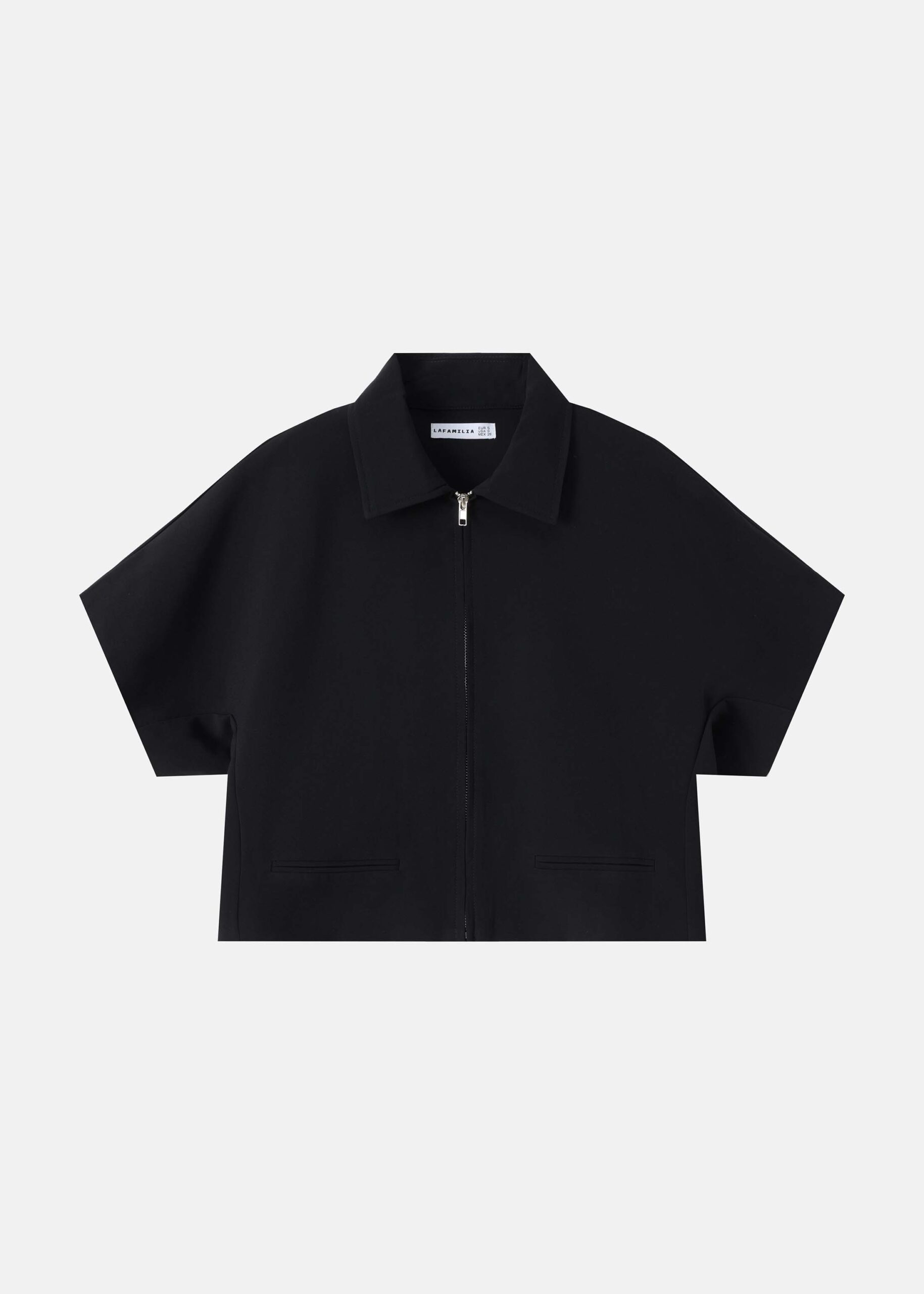 جاكيت نسائي, قصير, سحاب من الامام للاغلاق, ياقة مثنية, جيوب وهمية من الامام, اكمام قصيرة, انيق وعصري
