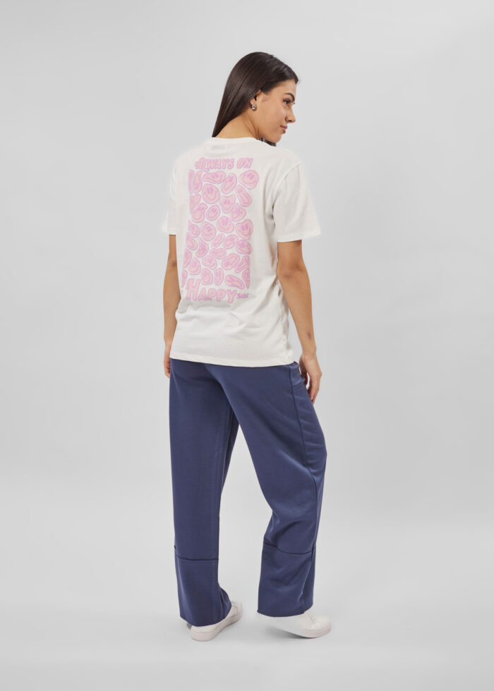 تيشيرت نسائي, طباعة Smiley Faces من الامام والخلف, ياقة مدورة, اكمام قصيرة, انيقة وعملية