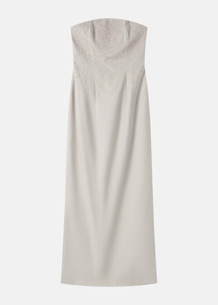 فستان نسائي, طويل, بدون اكمام, تطريز بارز, سحاب من الخلف للاغلاق, فتحة من الخلف, انيق وعصري