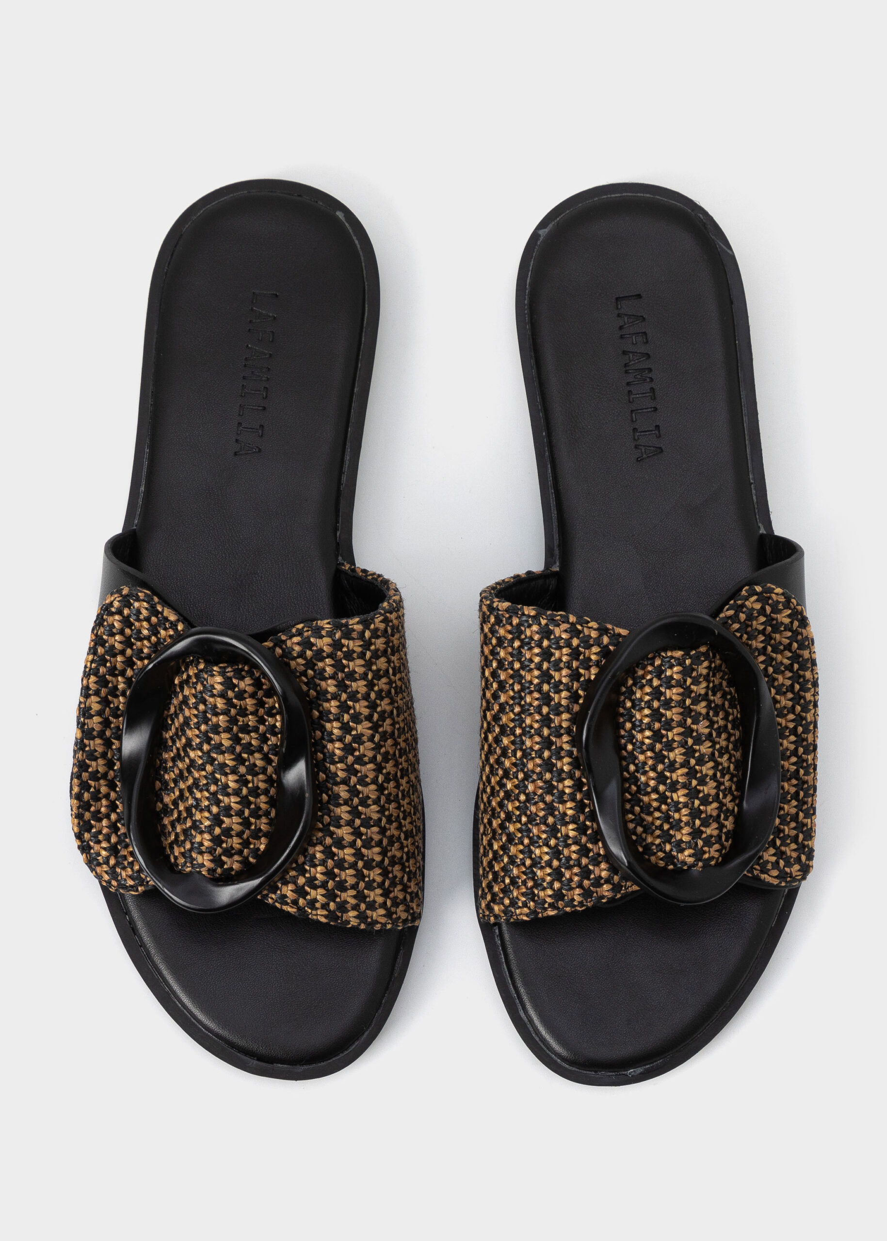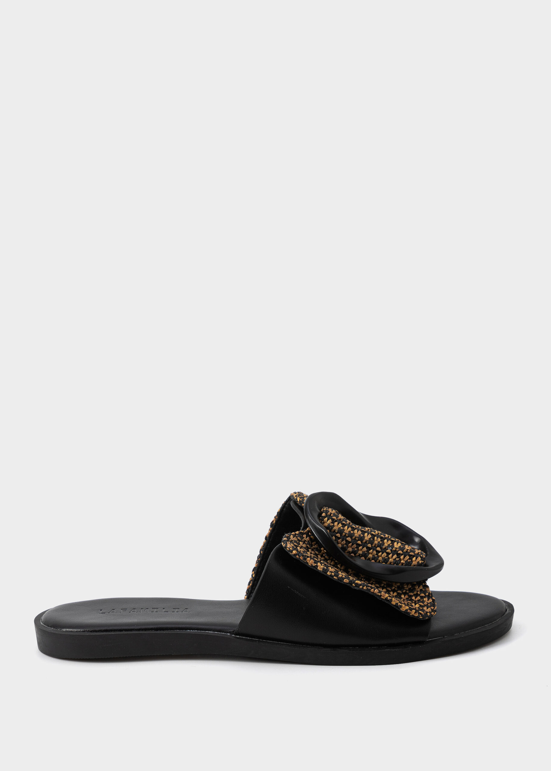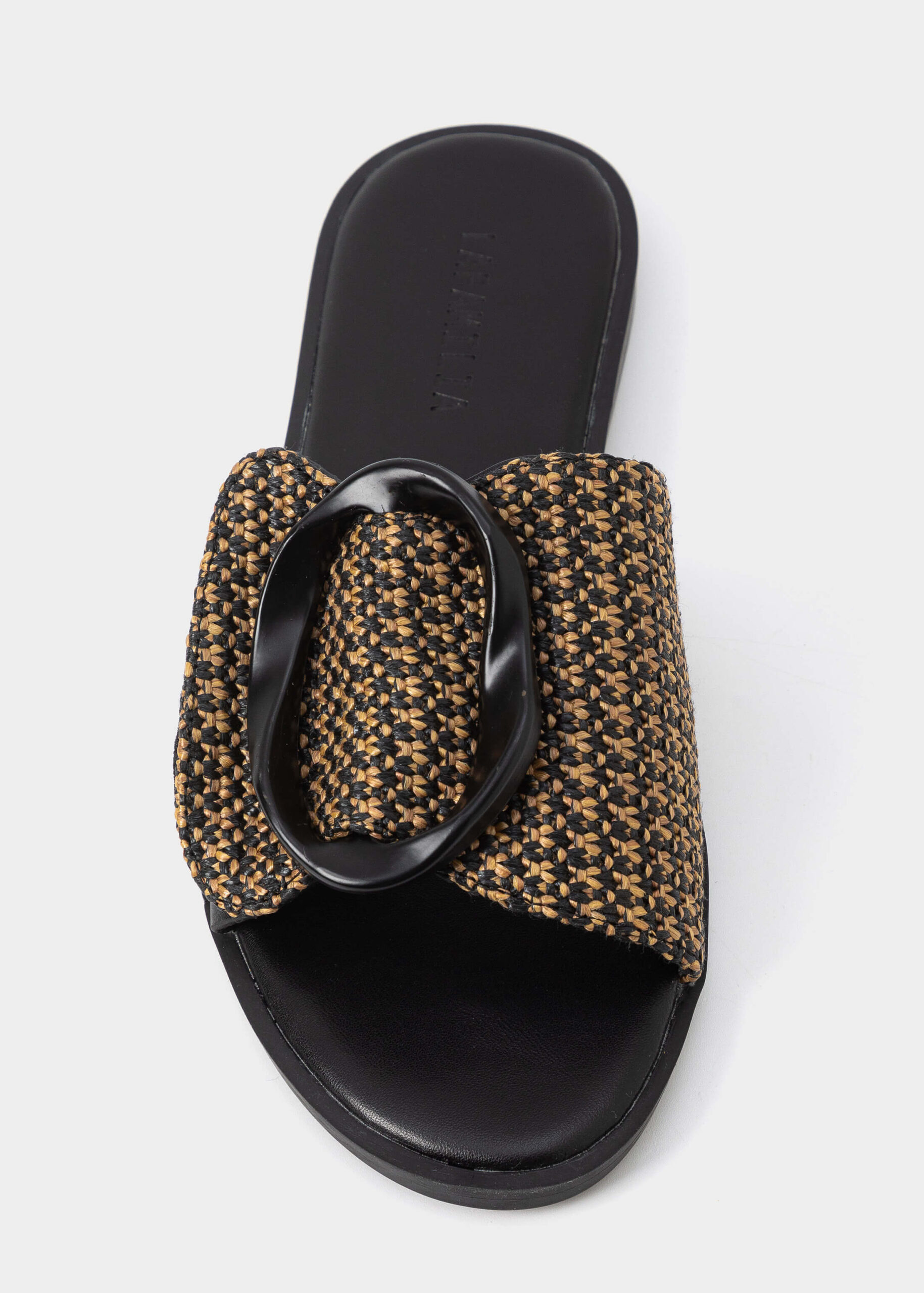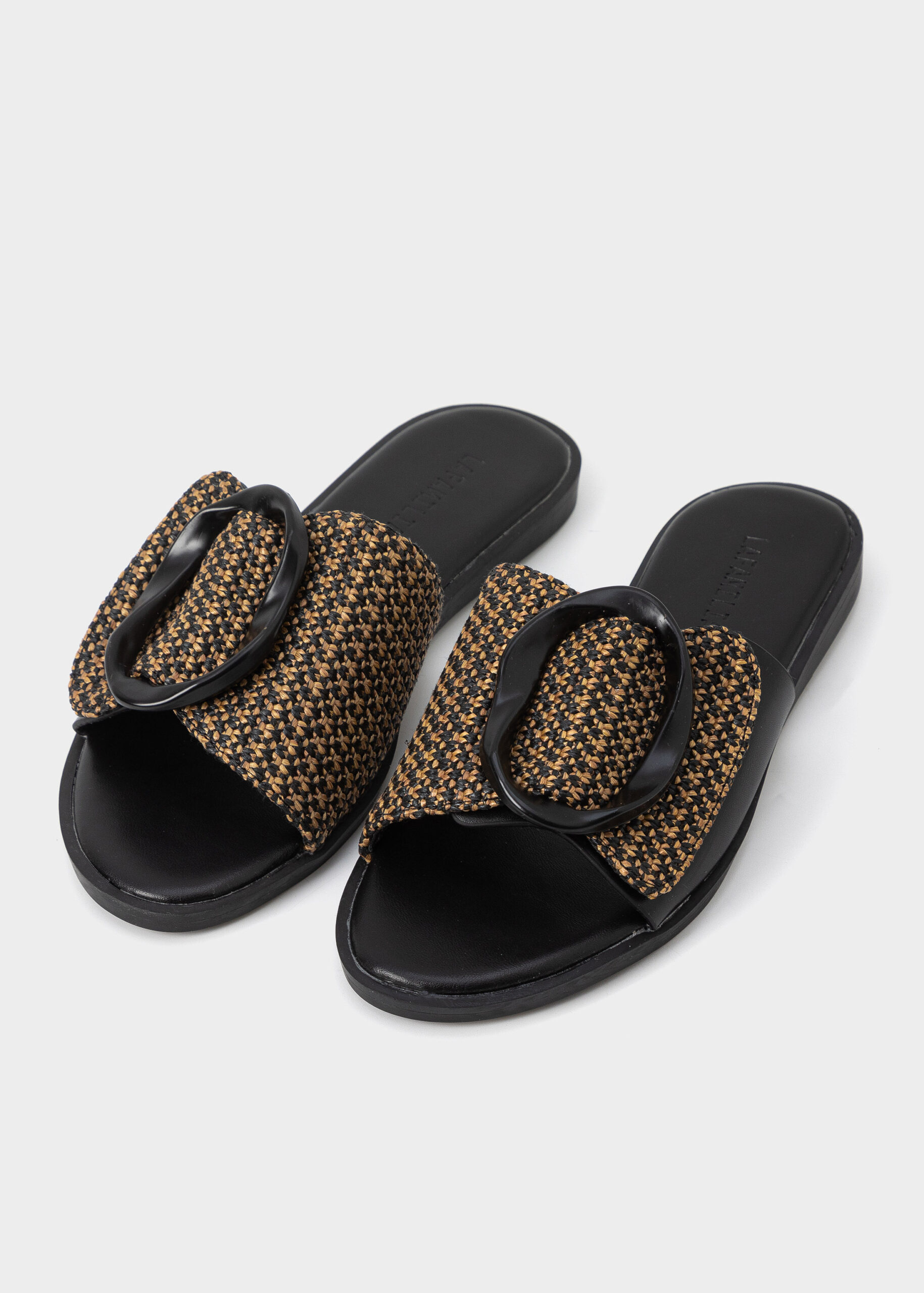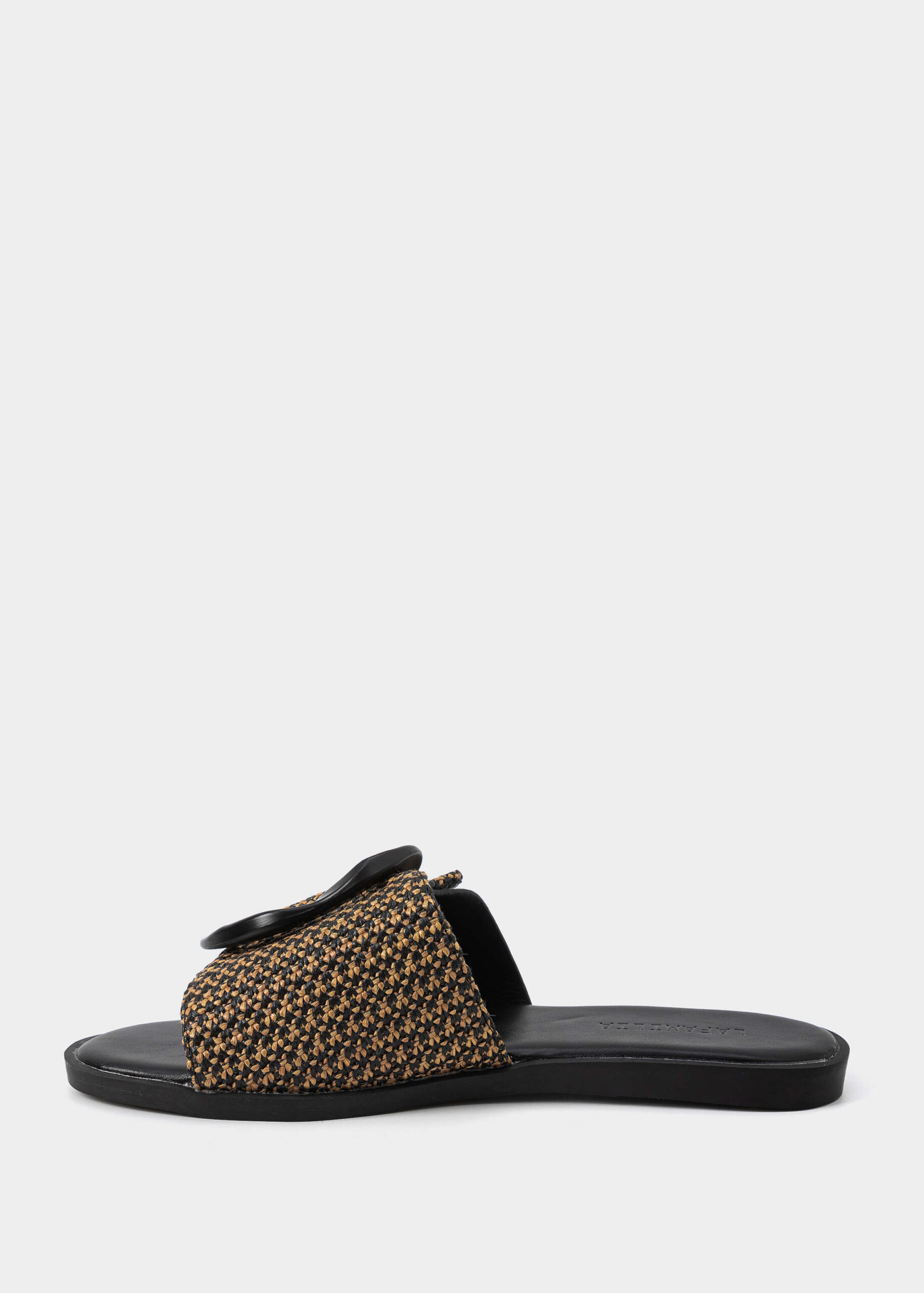 سليبر نسائي, شريط علوي من القش مزين بقطعة من الاعلى, مسطح, مقدمة مدورة مفتوحة, انيق ومريح