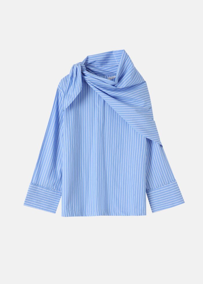بلوزة نسائي, مخططة, ياقة مدورة مع زر من الخلف, اكمام طويلة مع معصم بازرار, وشاح لعدة تنسيقات, انيقة وعصرية
