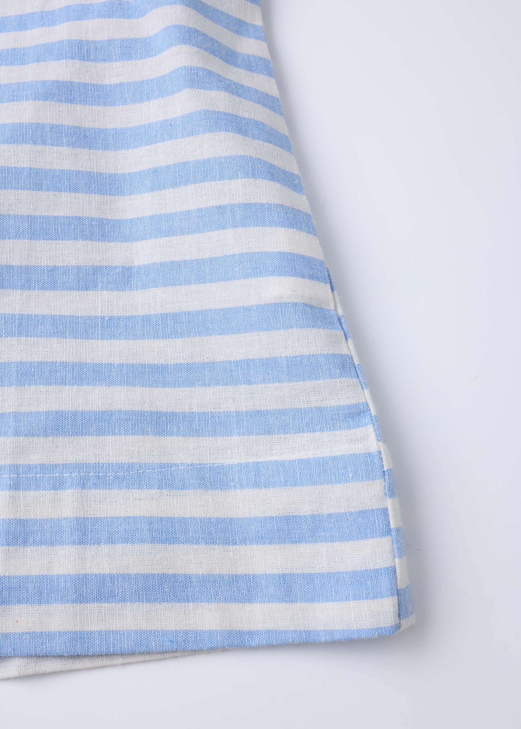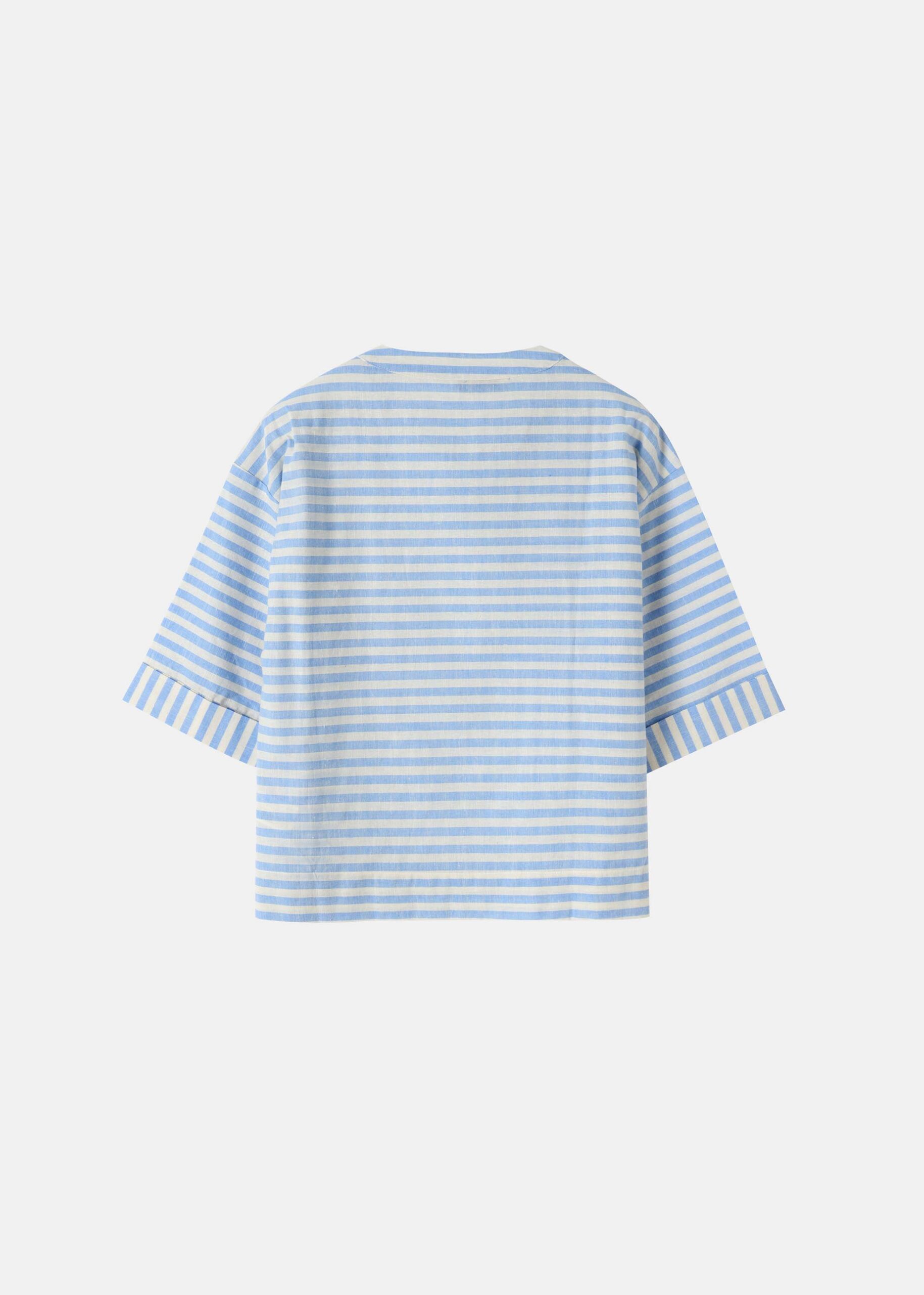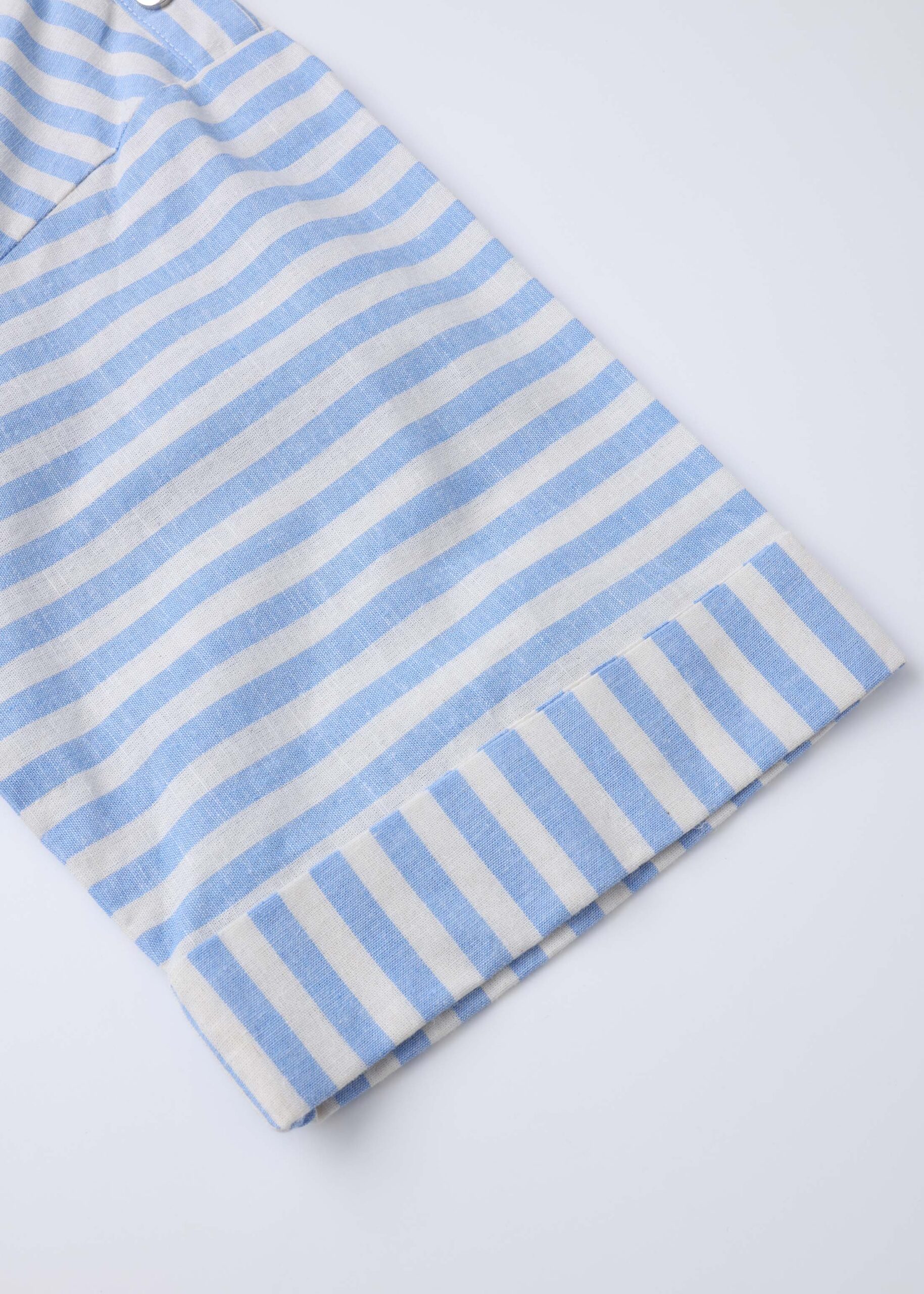 بلوزة نسائي, مخططة, ياقة مدورة, اكمام قصيرة, مزينة بازرار على الكتف, انيقة وعملية
