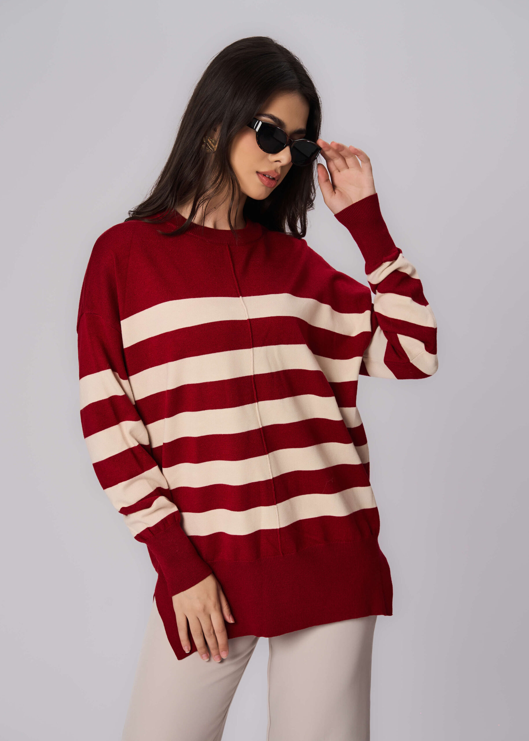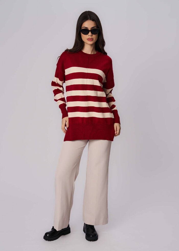 بلوزة نسائي, مخططة, ياقة مدورة, اكمام طويلة مع معصم ضيق, انيقة وعصرية