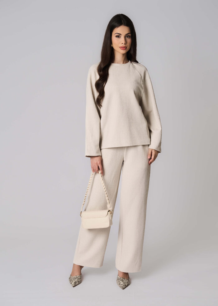 بلوزة نسائي, نسيج مخطط, ياقة مدورة, اكمام طويلة, انيقة وعملية