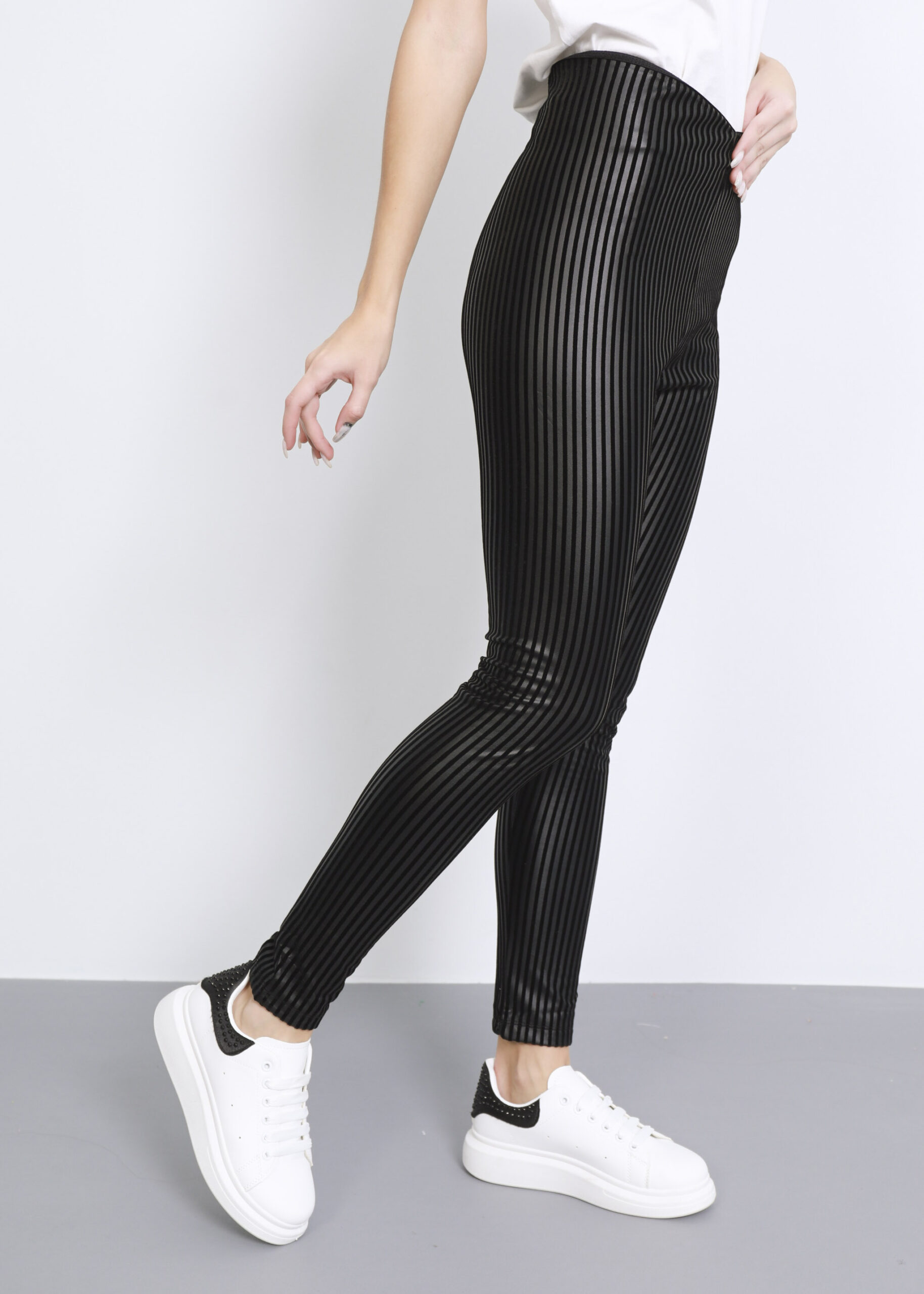 ليجنجز نسائي, تصميم مخطط في لون واحد, جلد, خصر عالي, مريح وعملي, 100% جلد صناعي