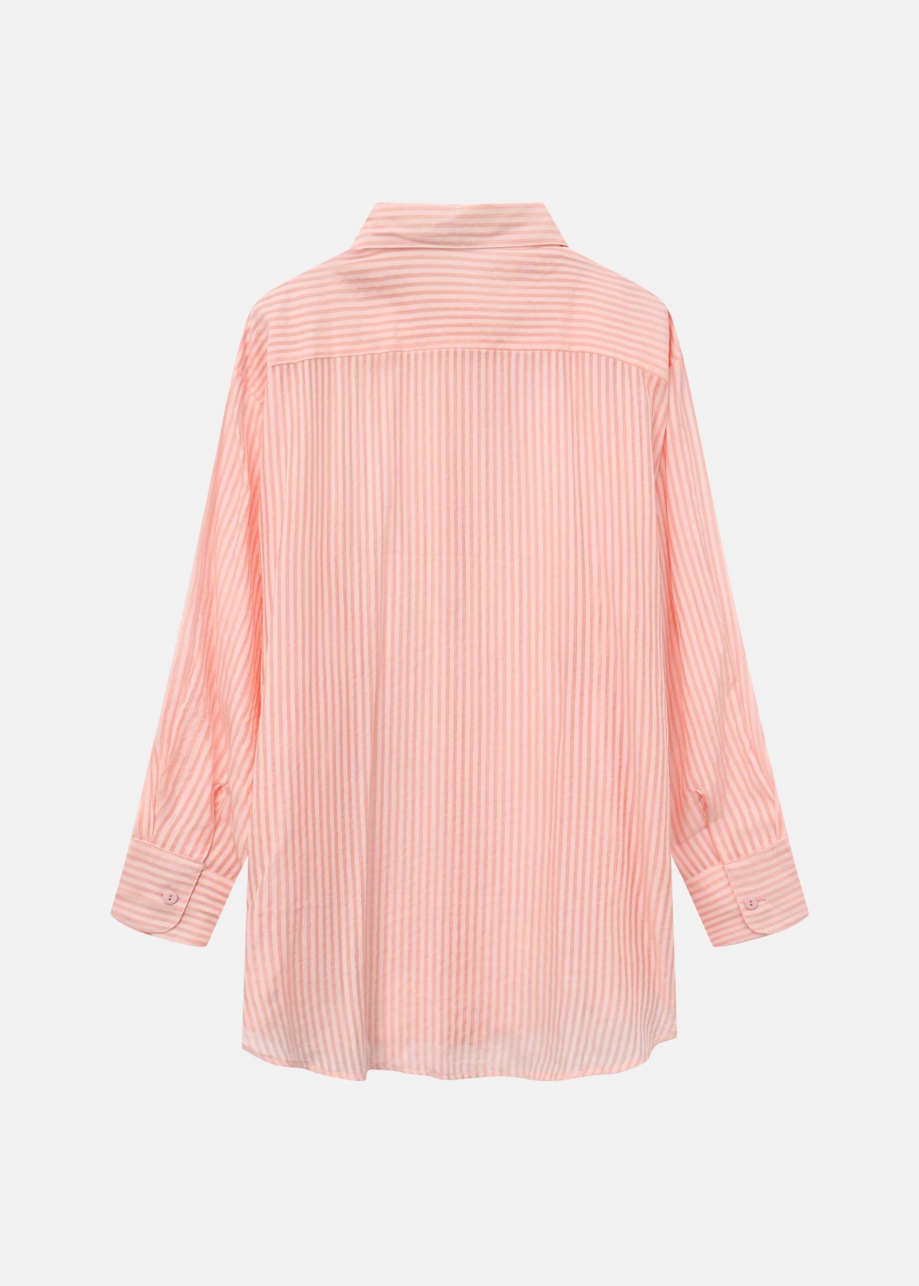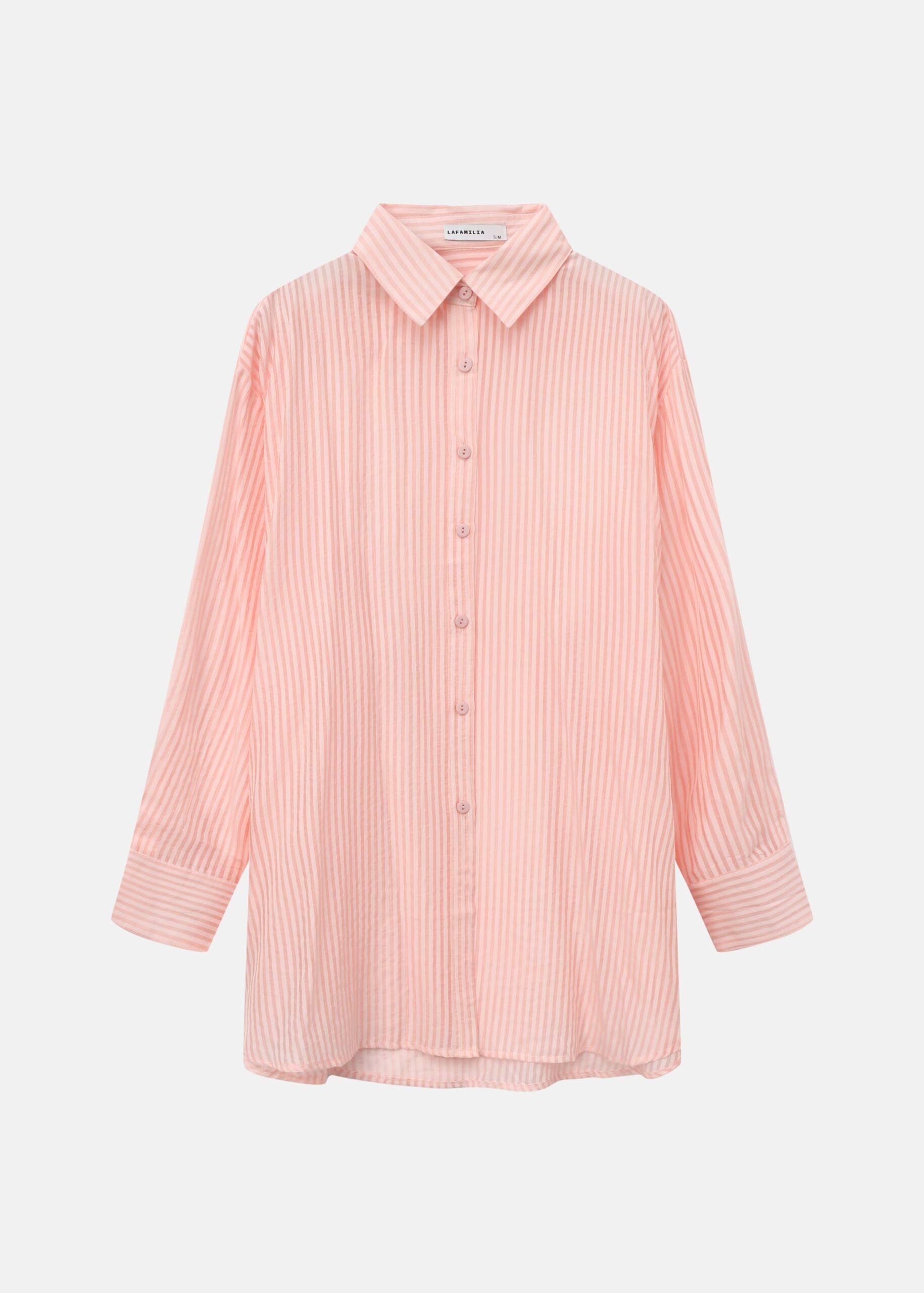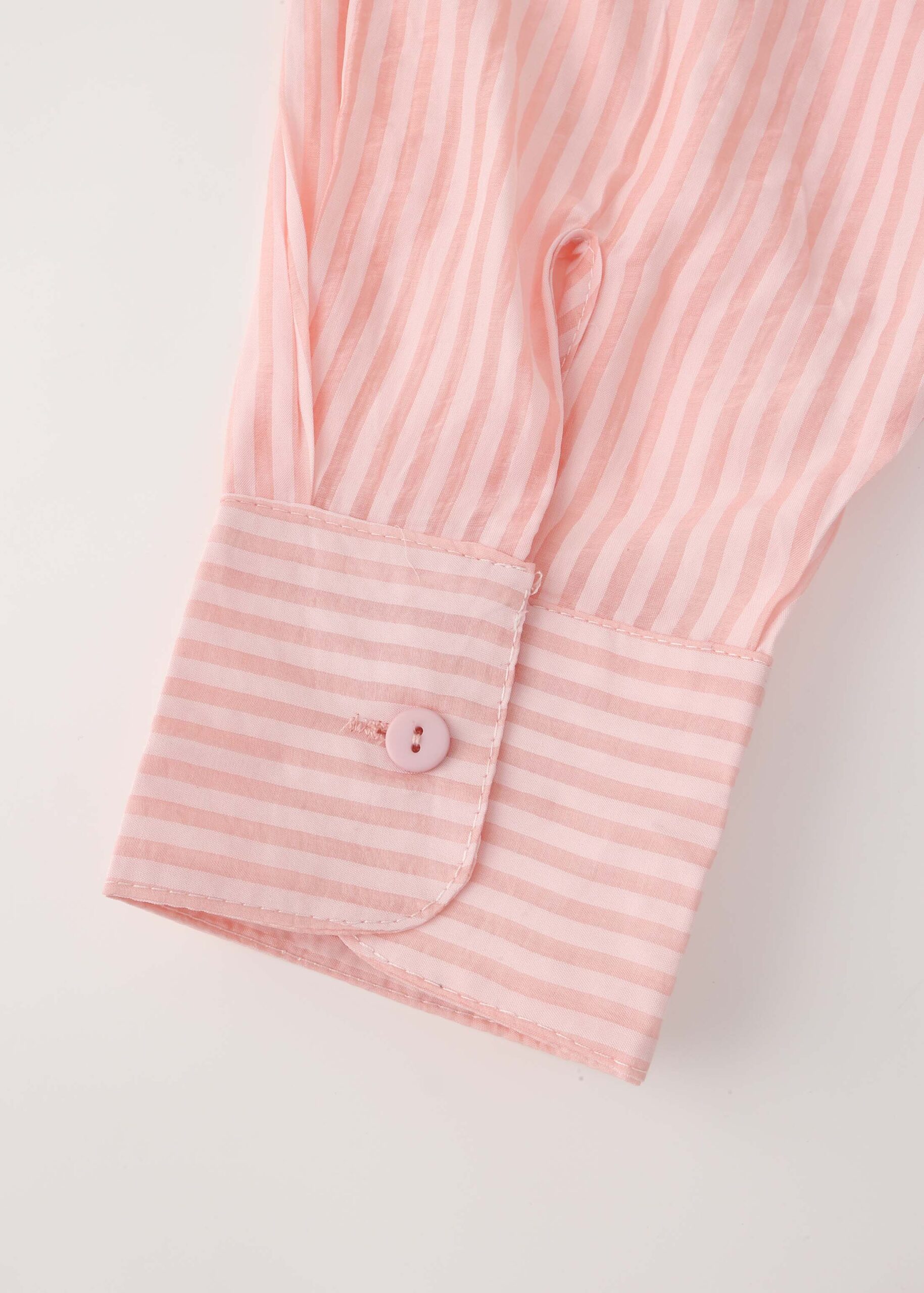 قميص نسائي, طويل, مخطط, ازرار من الامام للاغلاق, اكمام طويلة مع معصم ضيق, ياقة مثنية مع زر من الامام, انيق وعملي