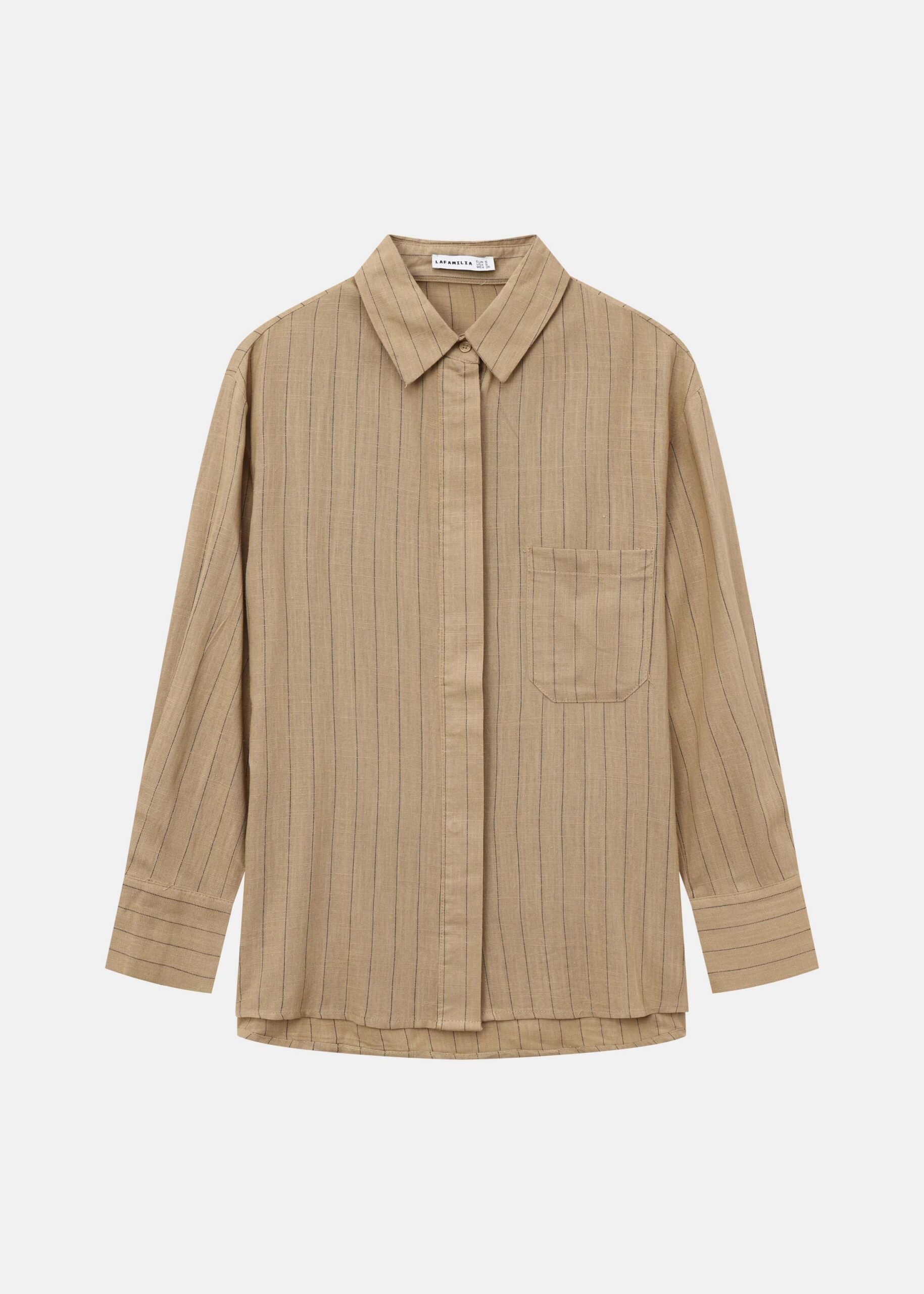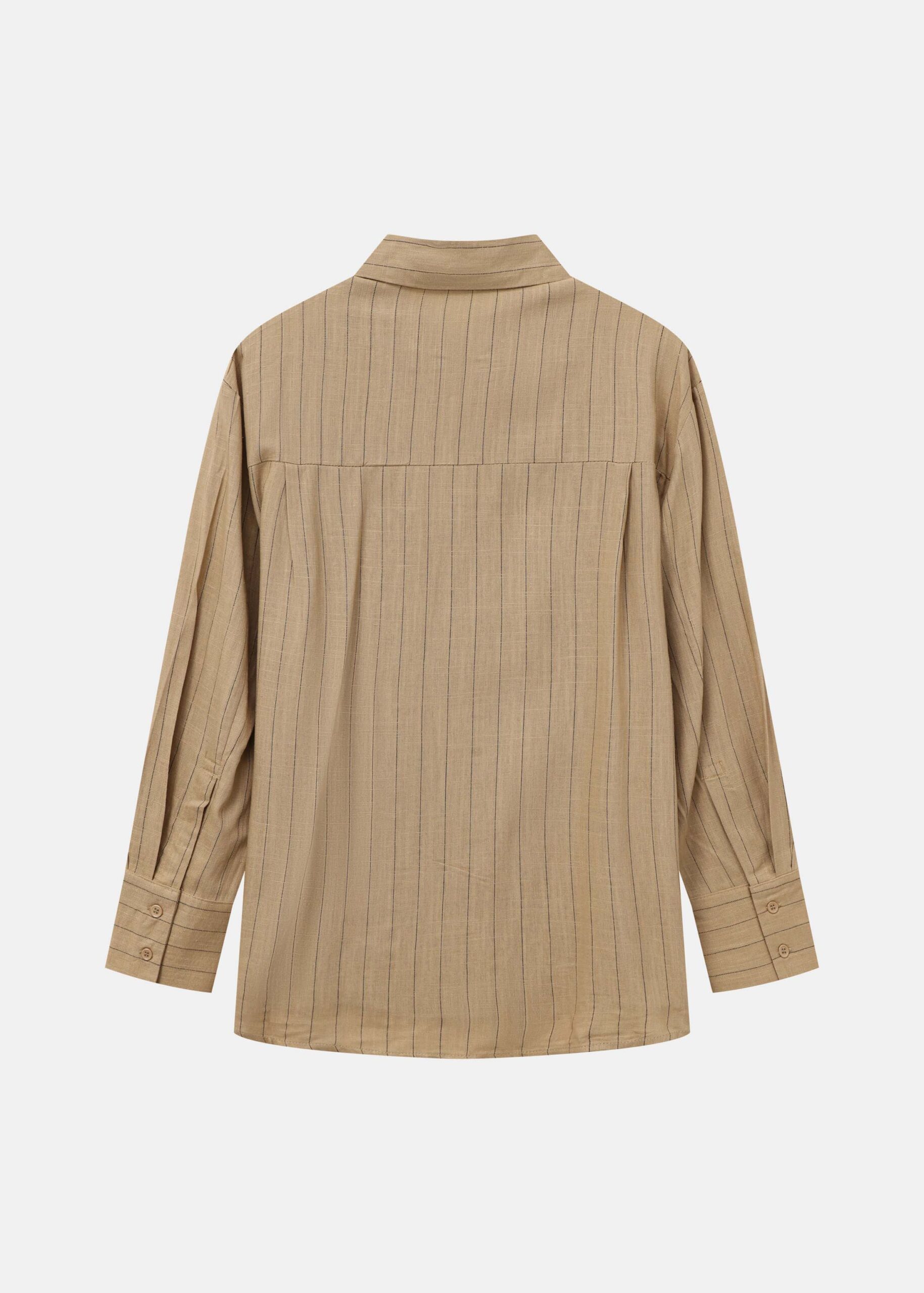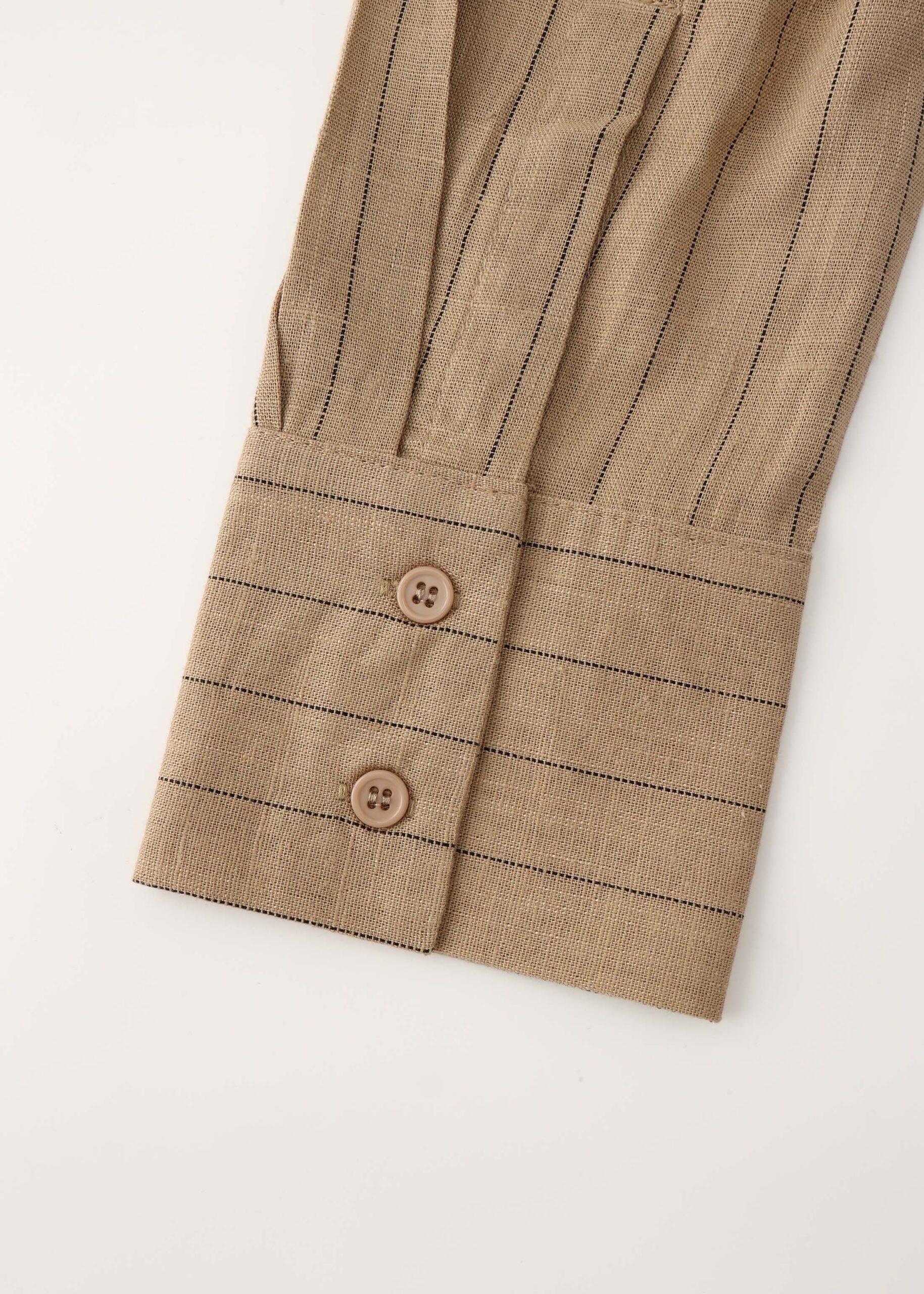 قميص نسائي, مخطط, ازرار من الامام للاغلاق, اكمام طويلة مع معصم ضيق, ياقة مثنية مع زر من الامام, جيب امامي, انيق وعصري
