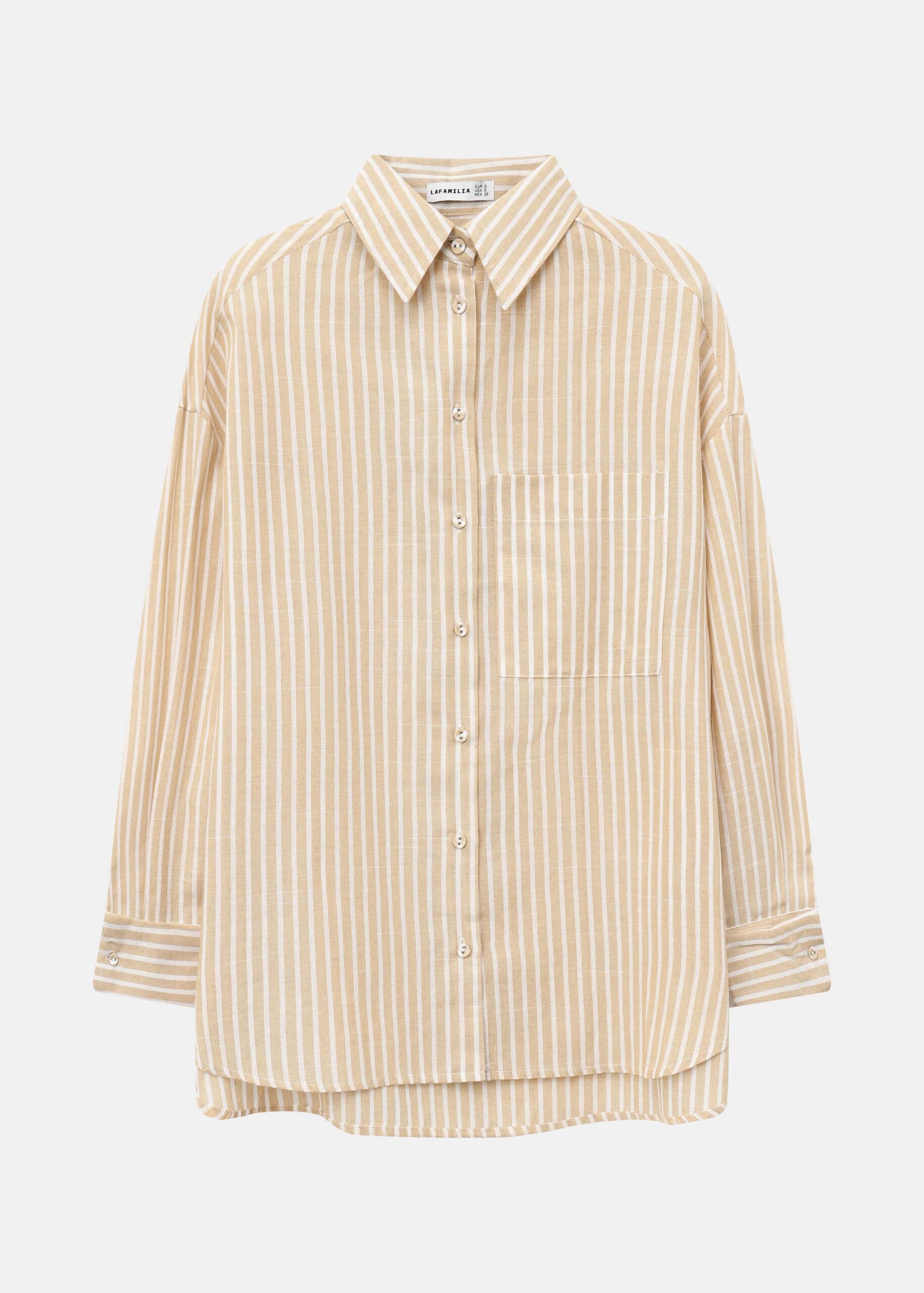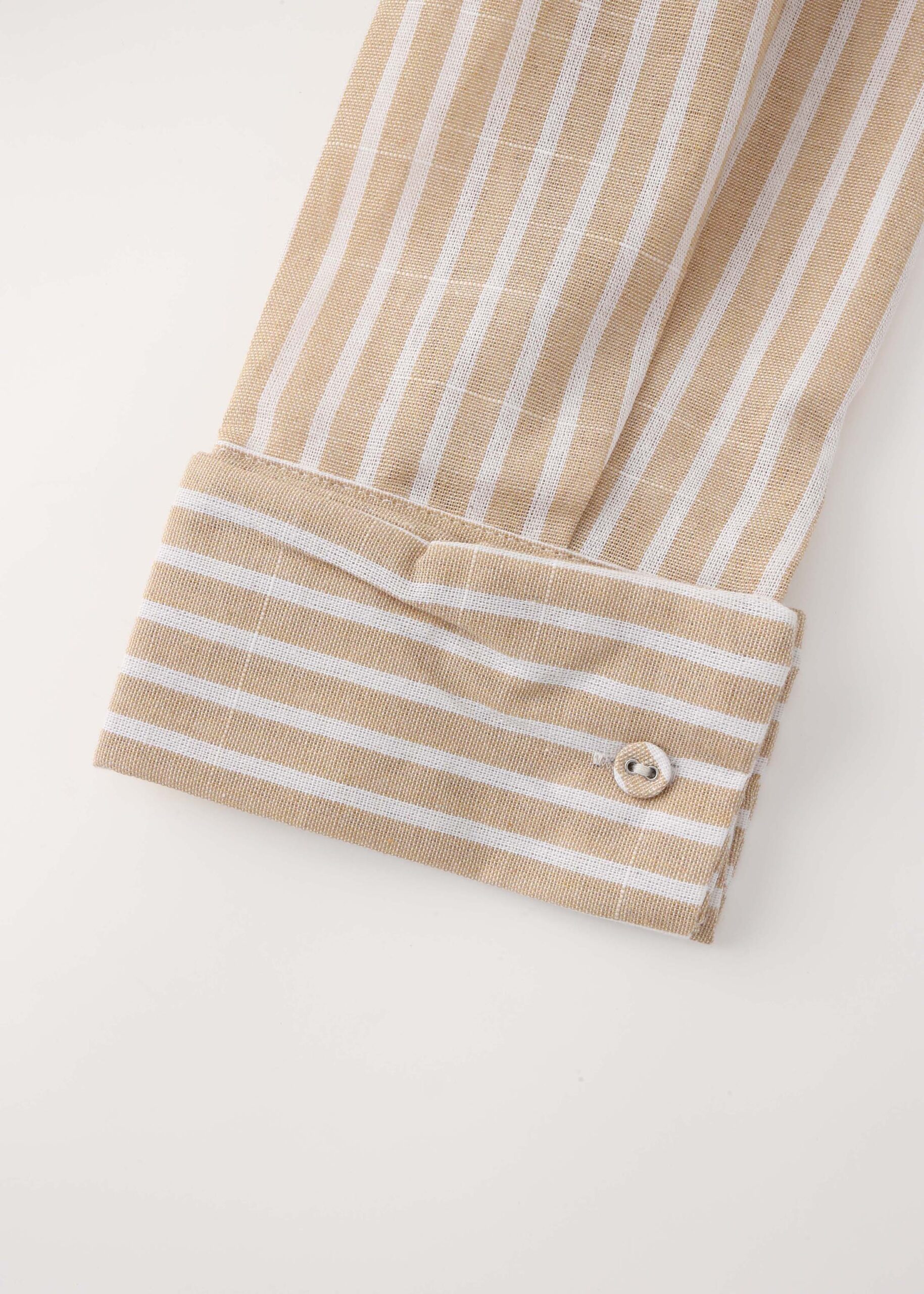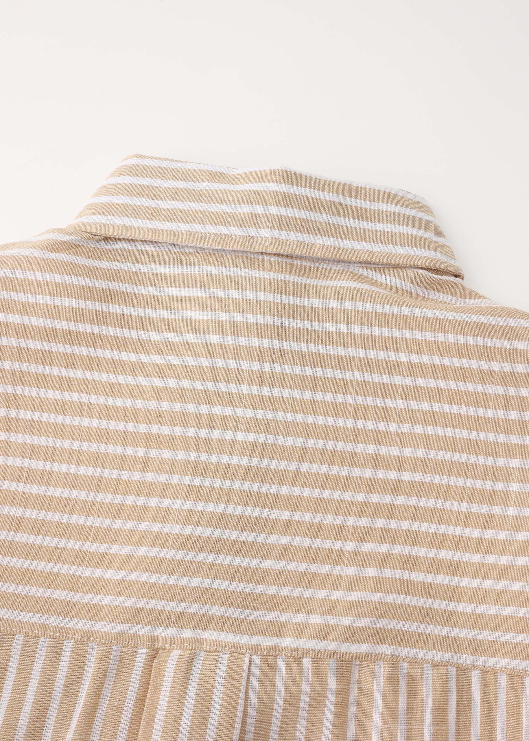قميص نسائي, مخطط,طويل, جيب من الامام, ازرار من الامام للاغلاق, ياقة مثنية مع زر من الامام, اكمام طويلة مع معصم ضيق, انيق وعصري
