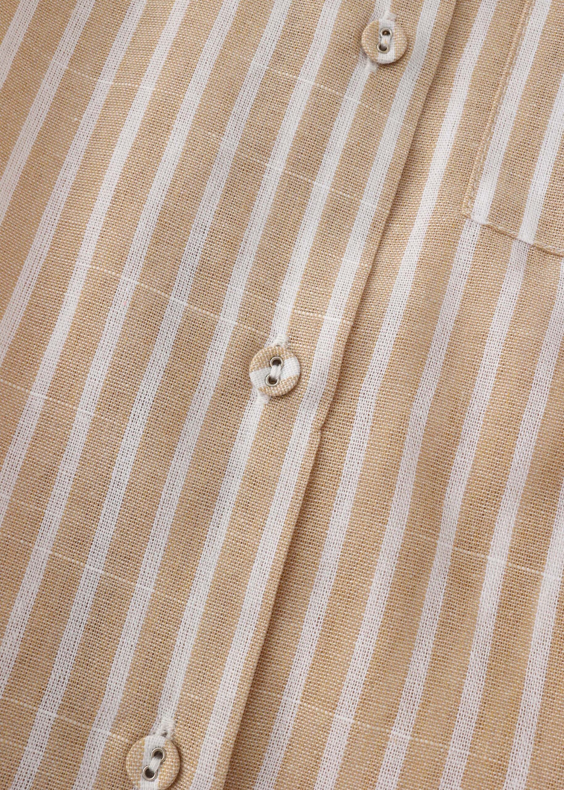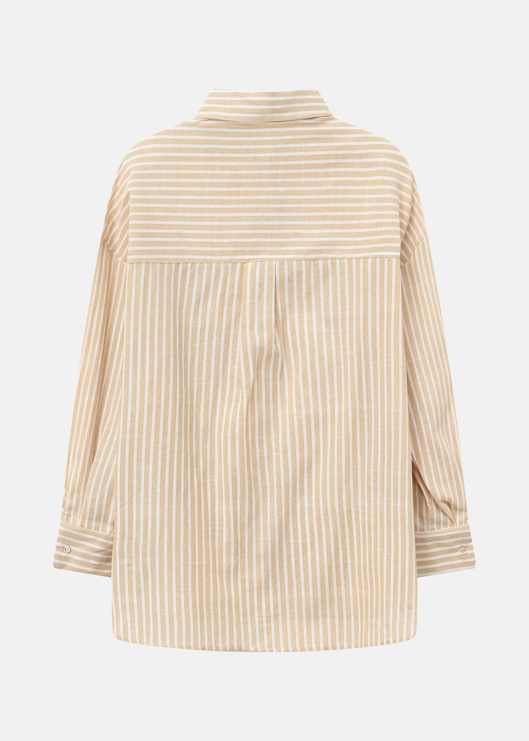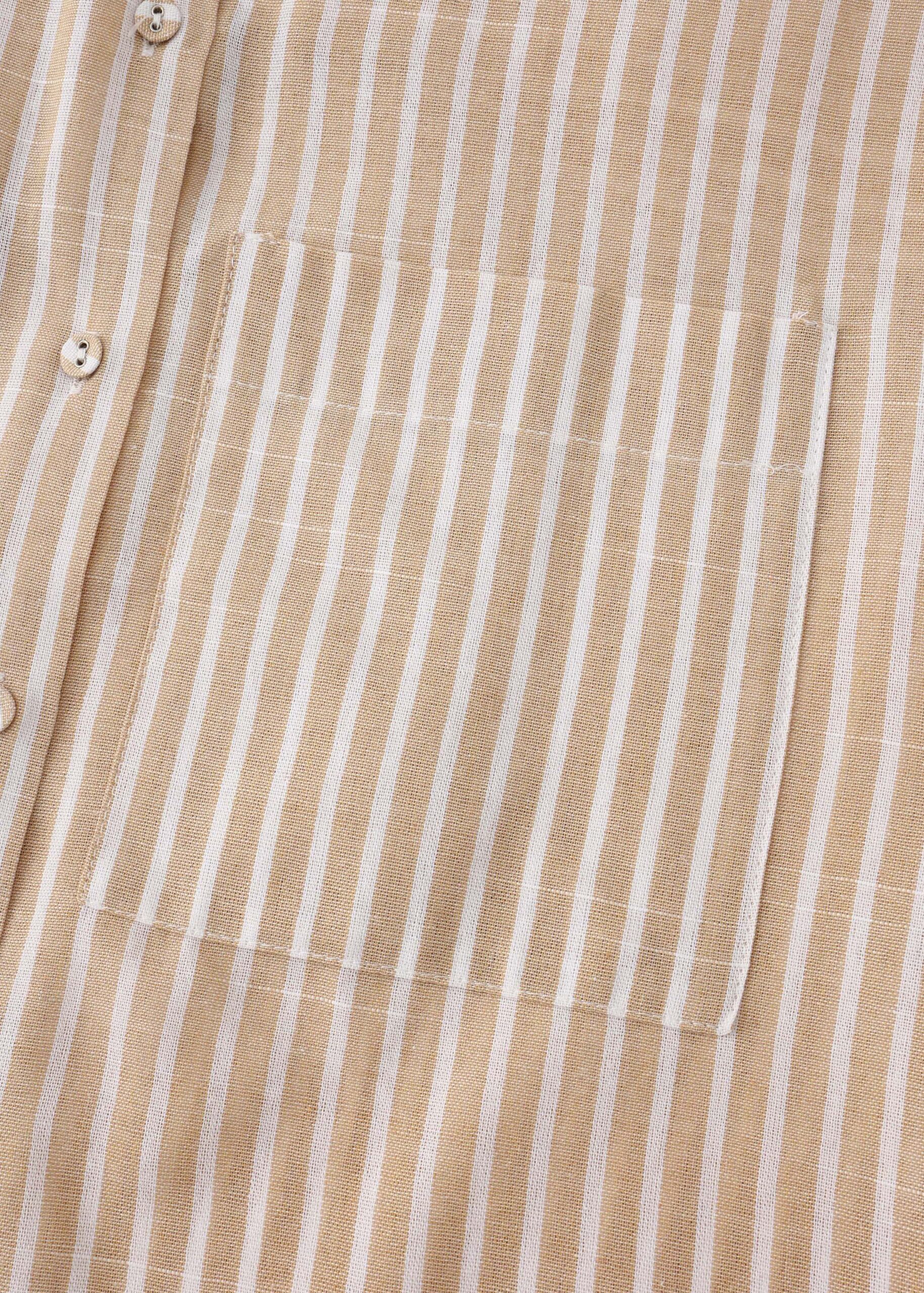 قميص نسائي, مخطط,طويل, جيب من الامام, ازرار من الامام للاغلاق, ياقة مثنية مع زر من الامام, اكمام طويلة مع معصم ضيق, انيق وعصري