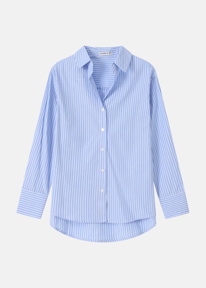 قميص نسائي, مخطط, ياقة مثنية من الخلف سبعة من الامام, ازرار من الامام للاغلاق, اكمام طويلة, معصم ضيق, انيق وعصري