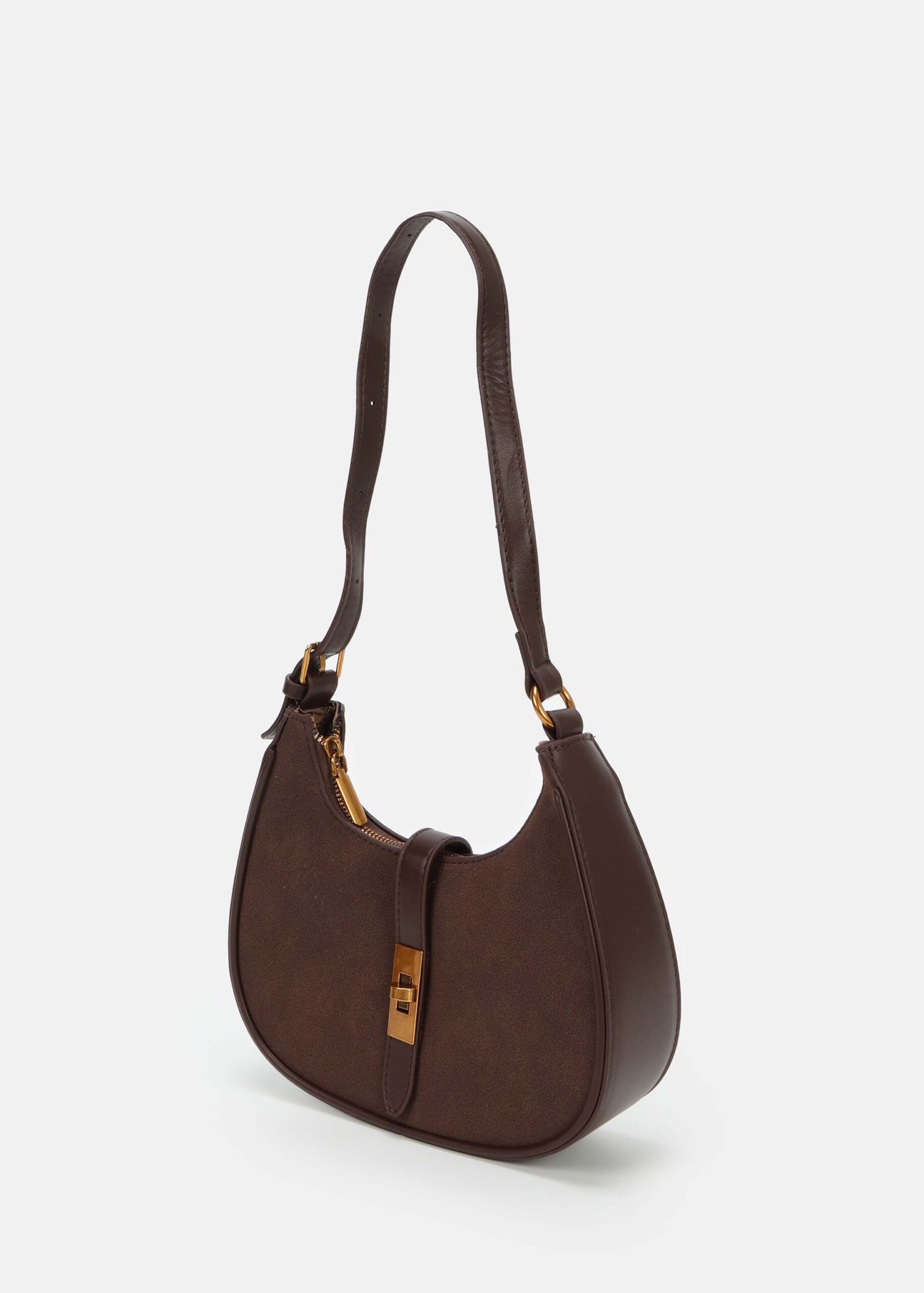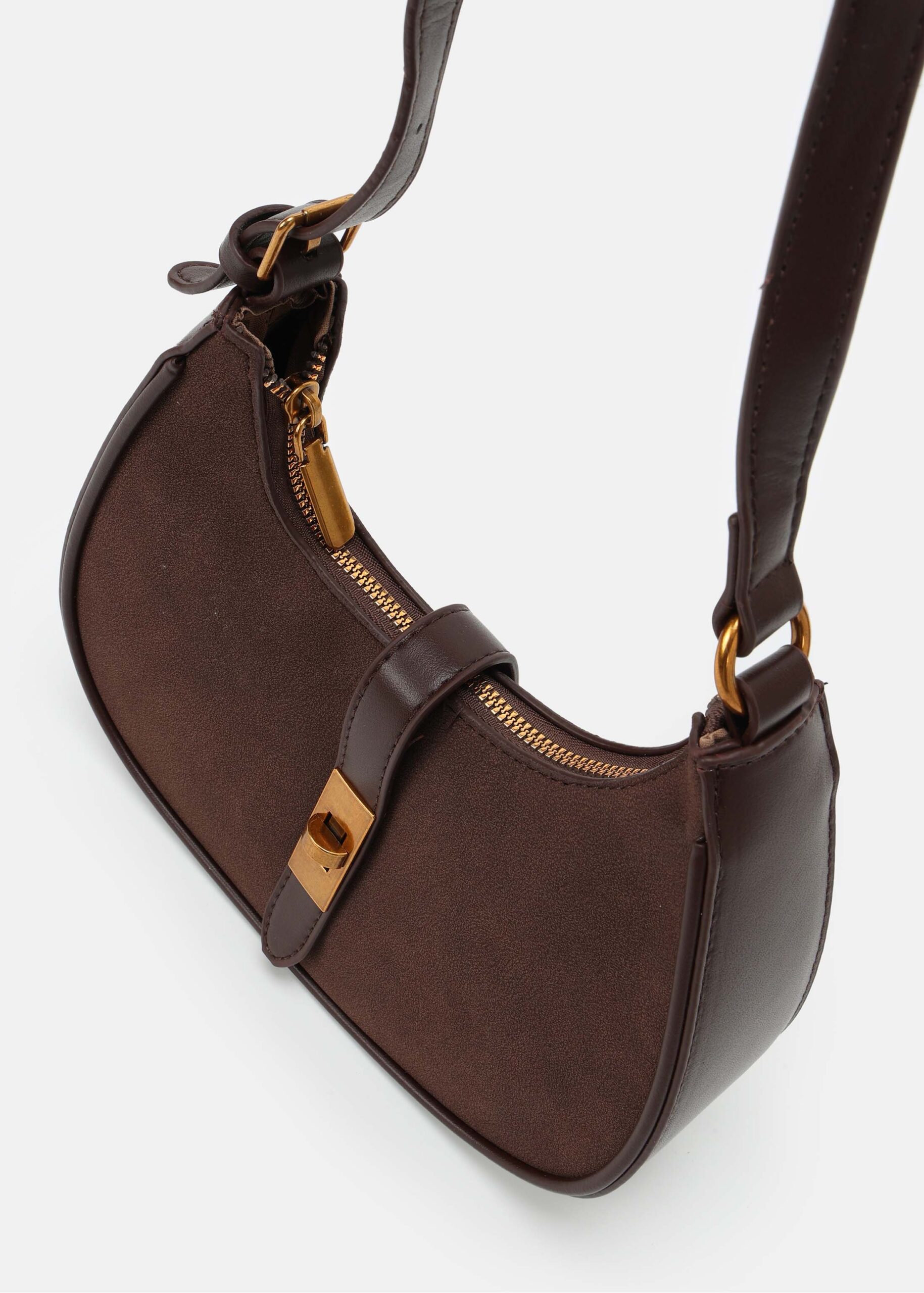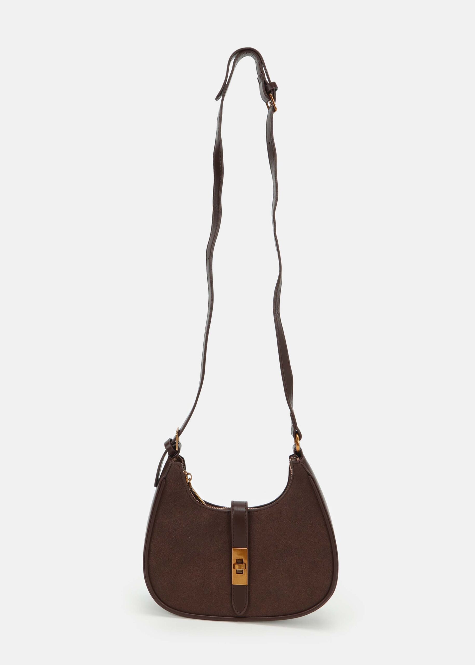 حقيبة نسائي, شامواه وجلد, غطاء امامي مع مشبك للاغلاق, حزام يد قابل للتعديل, حزام كتف قابل للتعديل والازالة, سحاب من الاعلى للاغلاق, انيقة وعصرية