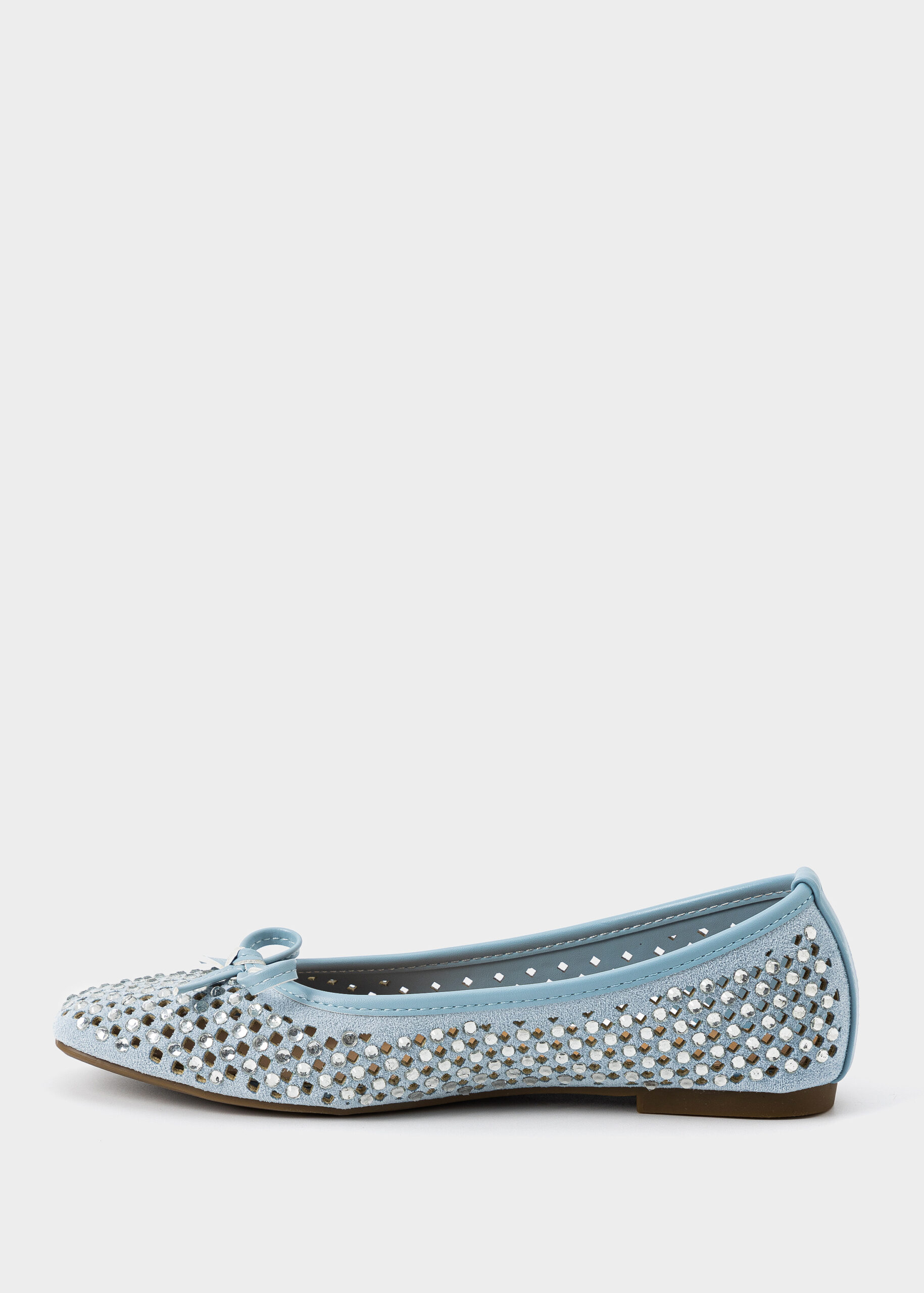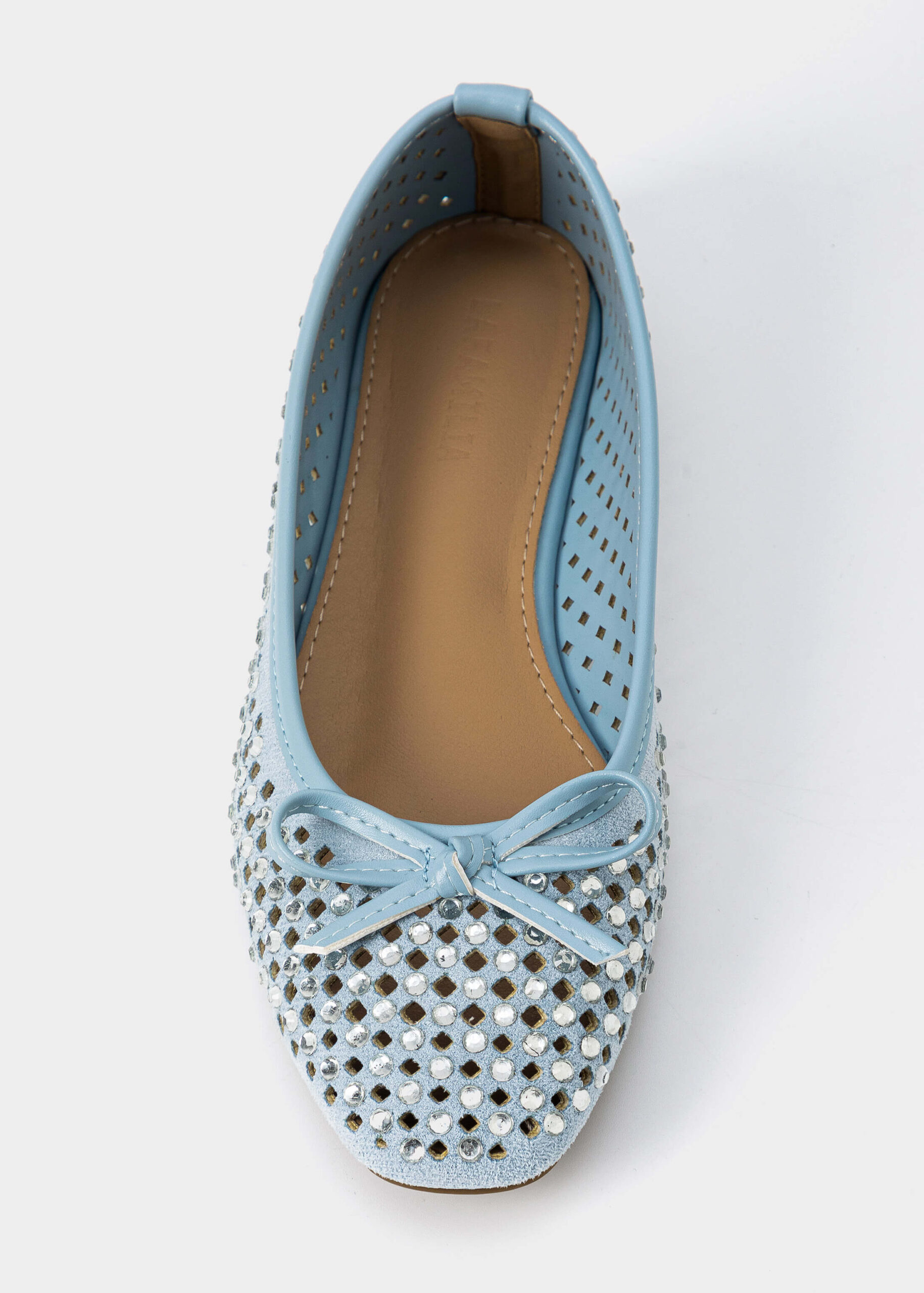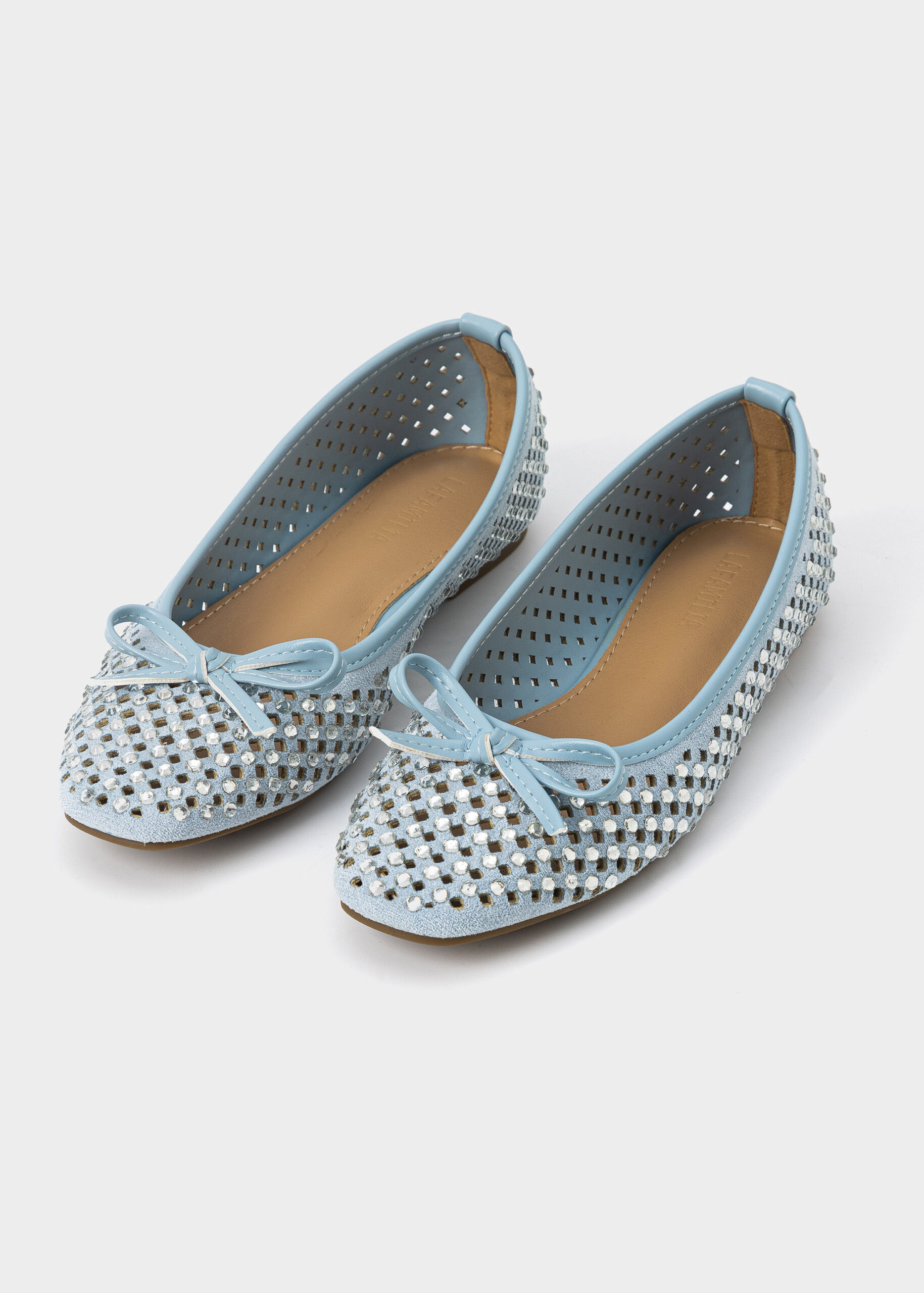 حذاء نسائي, باليرينا, شامواه, نسيج شبكي, مزين بالستراس, مزينة بفيونكة من الاعلى, مقدمة مدورة, نعل مطاطي, انيقة وعصرية