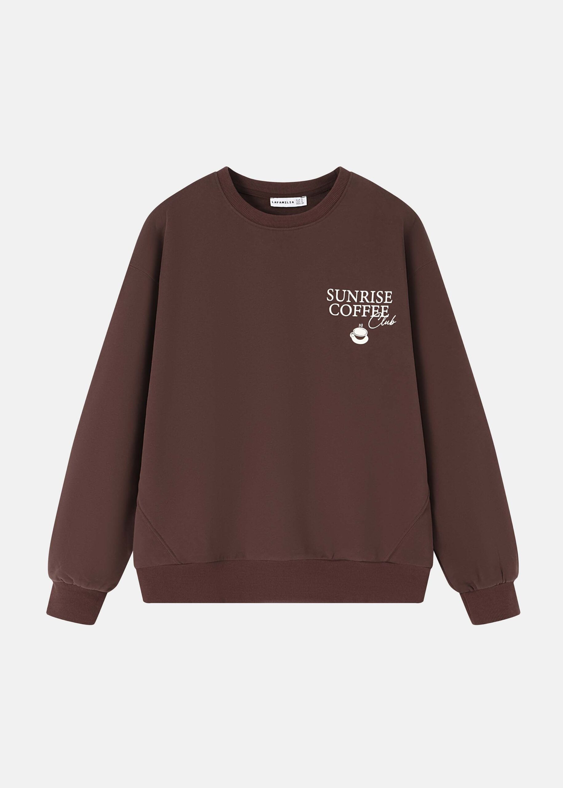 سويتشيرت نسائي, طباعة “Sunrise Coffee” من الامام والخلف, ياقة مدورة, اكمام طويلة, معصم ضيق, انيقة وعملية