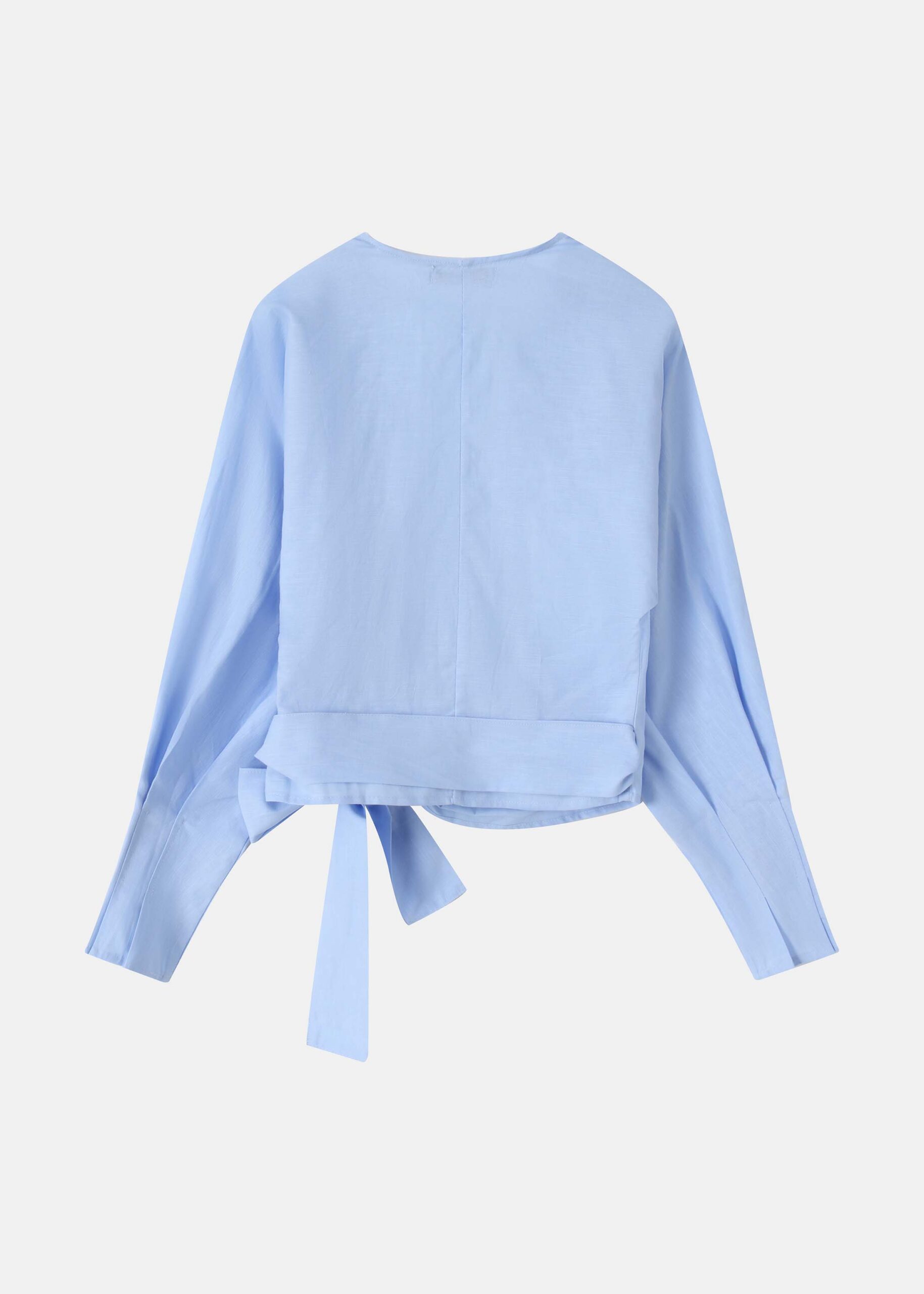 Women bolero, wrap design with side tie, V neck, long sleeves with pleated cuffs, unique and modern
