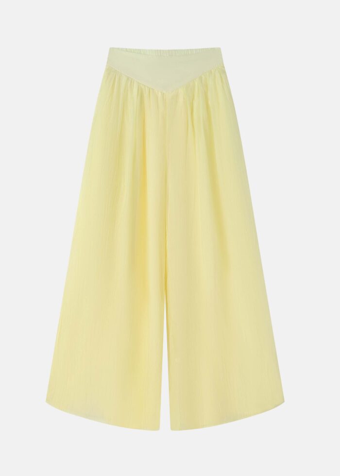 بنطلون نسائي, سادة, واسع, خصر عالي, خصر مطاطي من الخلف, جيوب من الامام, انيق وعصري