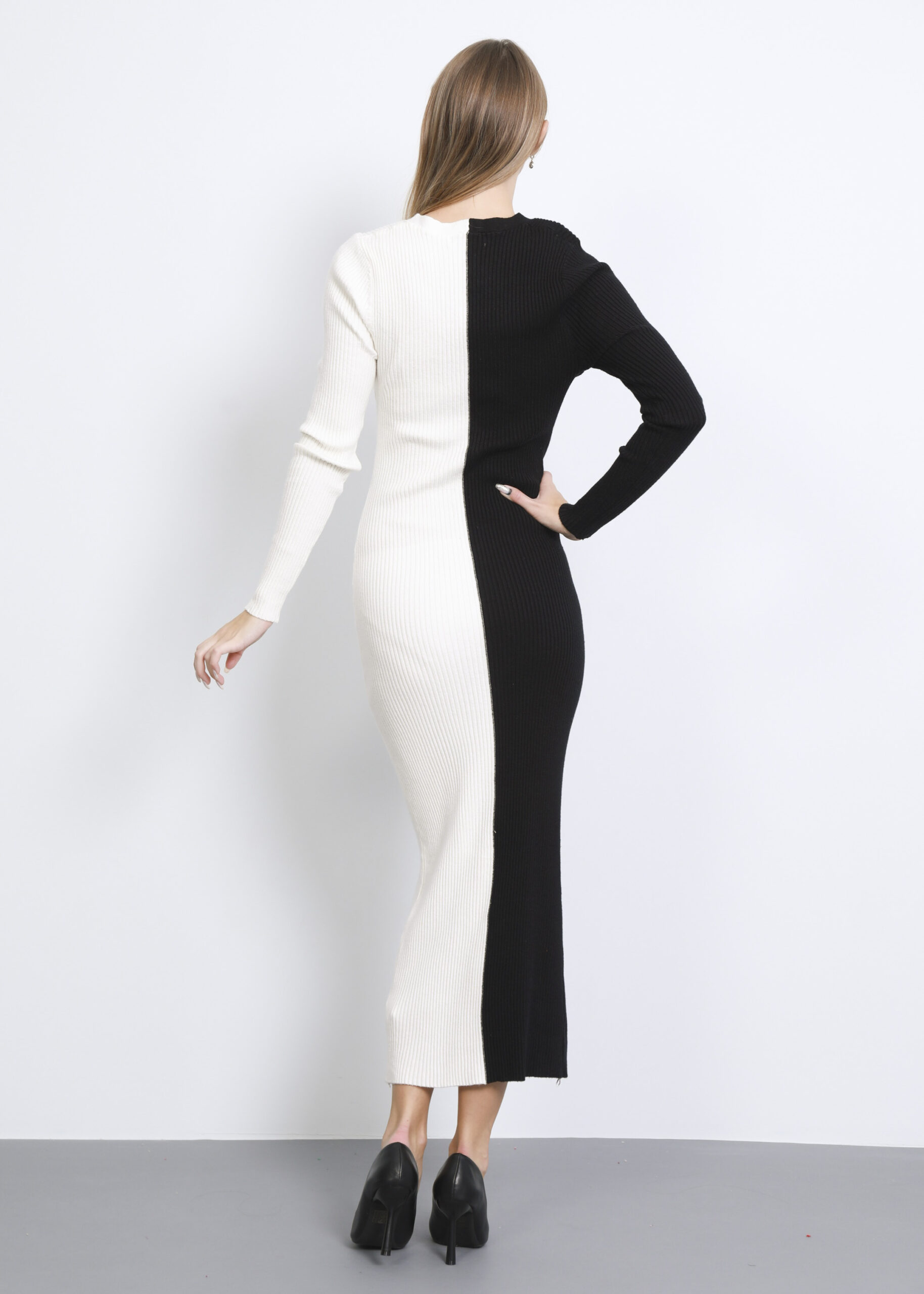 فستاني نسائي, لونين, تصميم محبوك, طويل, اكمام طويلة, ياقة سبعة, ازرار امامية للاغلاق, انيق وعصري, 85% فيسكوز 15% نايلون
