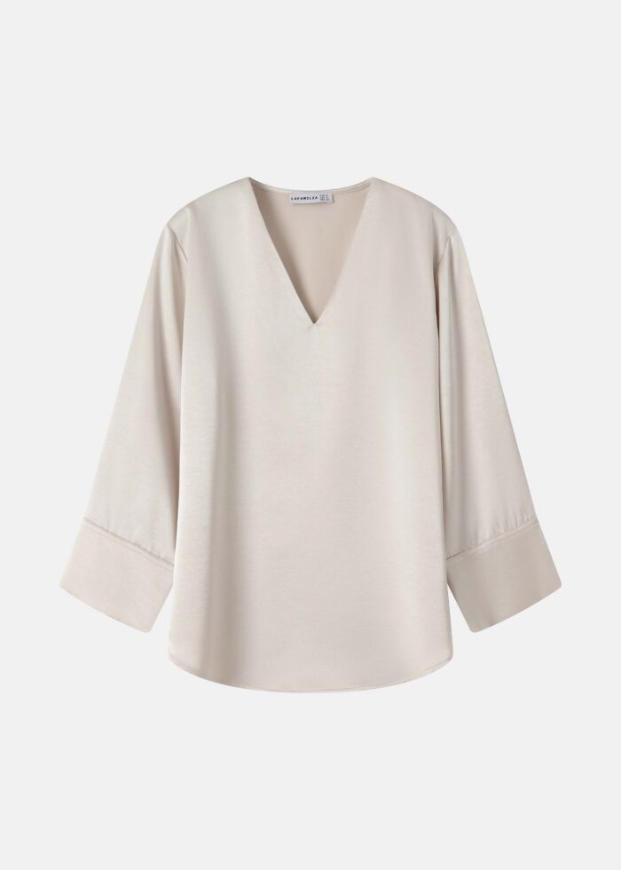 بلوزة نسائي, ساتان, سادة, ياقة سبعة, اكمام طويلة مع ازرار على المعصم, انيقة وعصرية