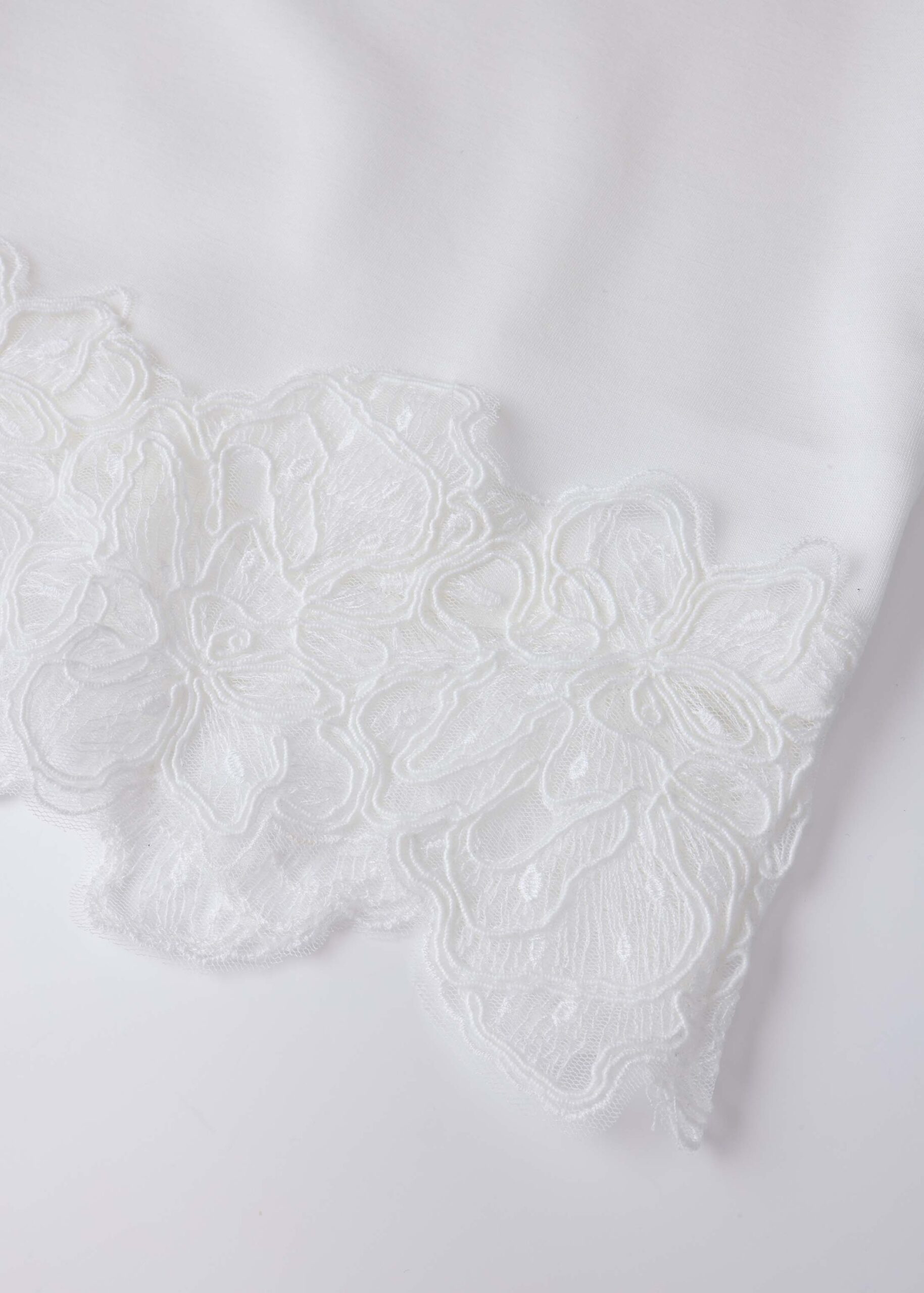 تيشيرت نسائي, قصير, ياقة سبعة, اكمام قصيرة, مزين بشريط دانتيل من الاسفل, انيقة وعصرية