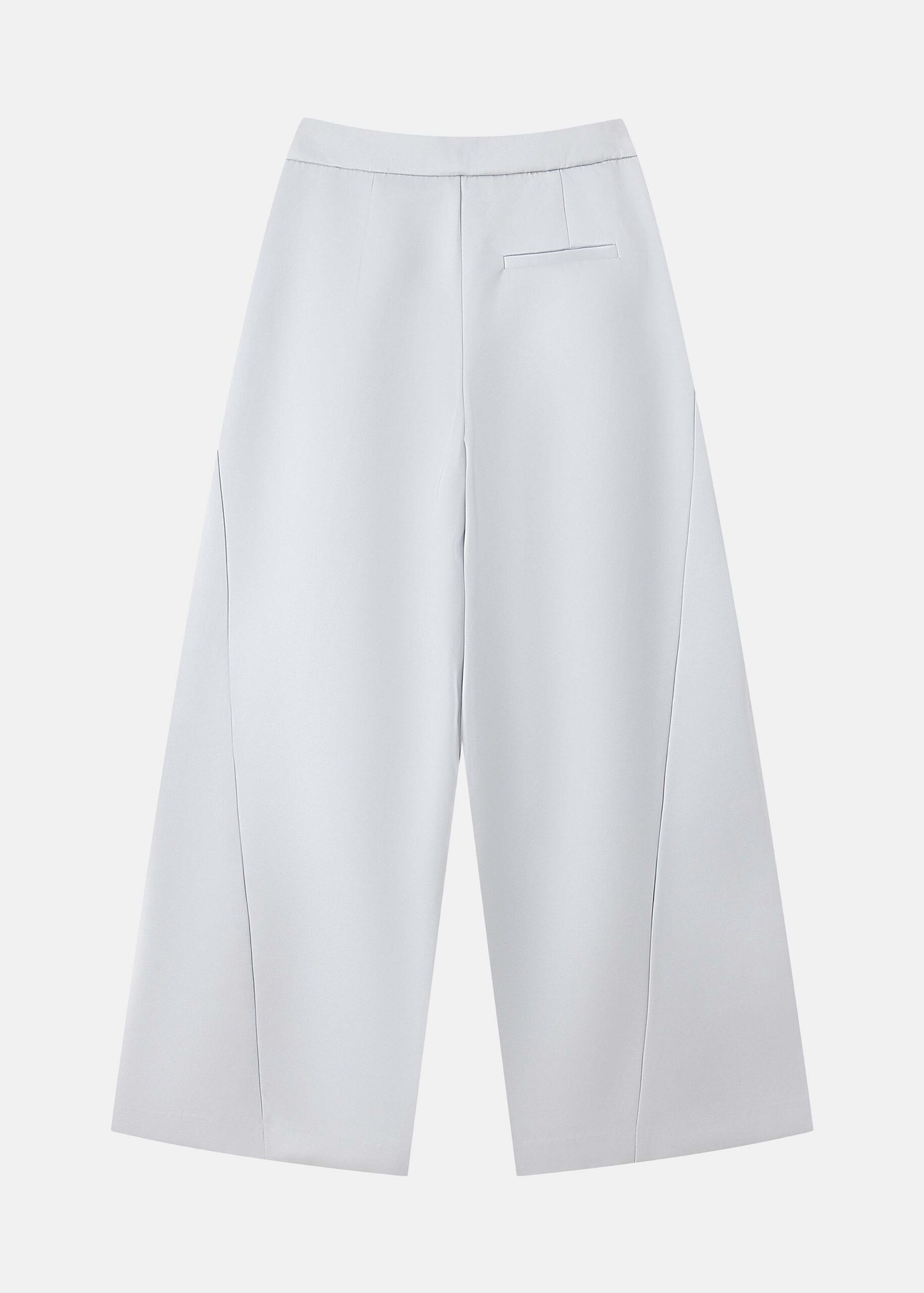 Women trouser, wide-leg, plain, front pleats, front and back pockets, front button and zipper closure, unique and modern