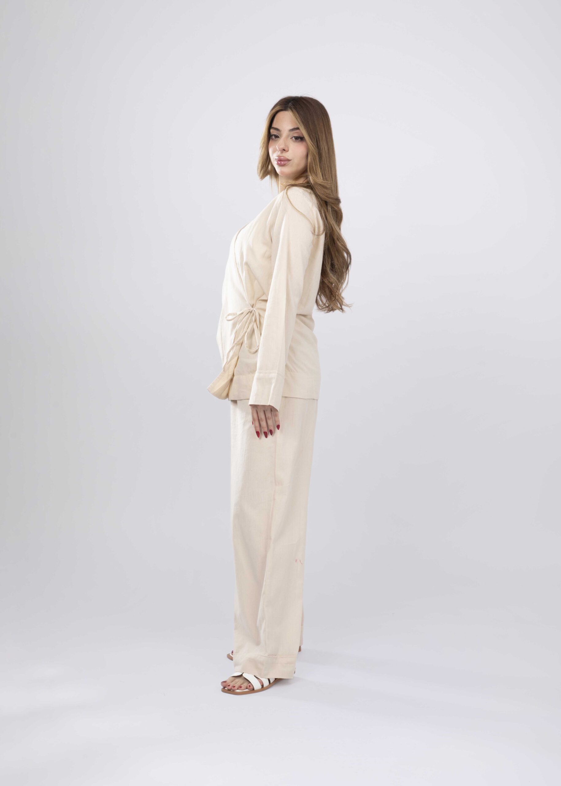 بلوزة نسائي, سادة, تصميم ملتف مع حبل للربط من الجانب, ياقة سبعة, اكمام طويلة, انيقة وعصرية