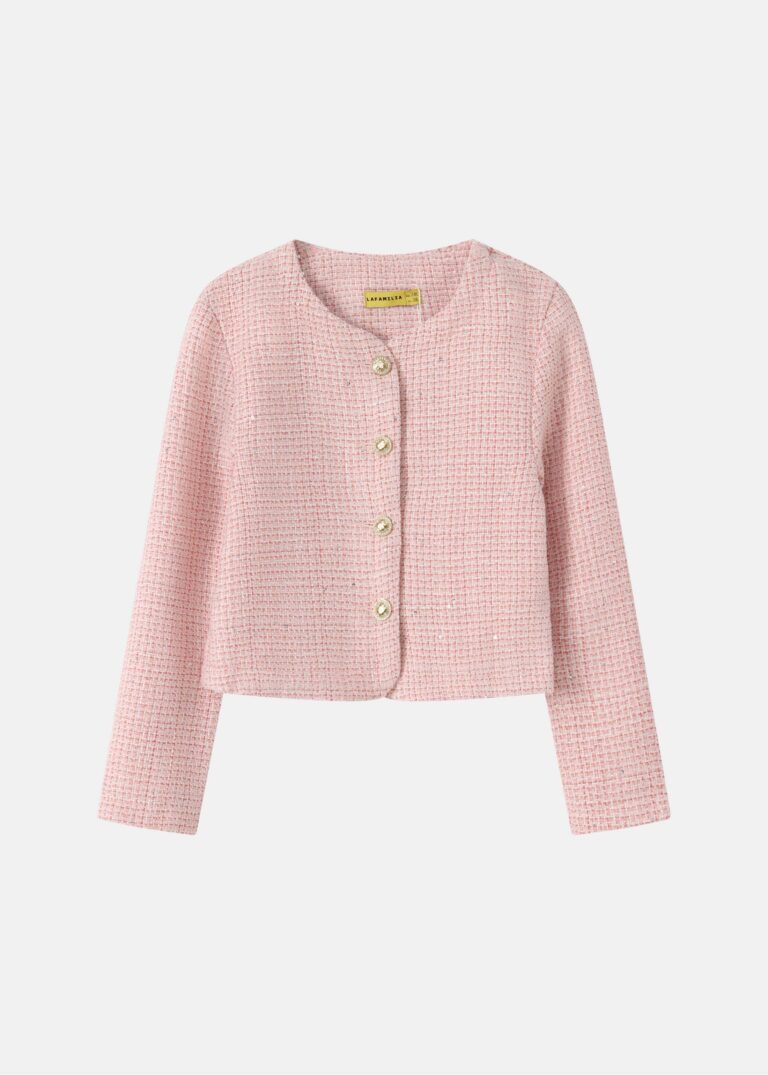 جاكيت أطفال بناتي, نسيج محبوك, خرز لامع, ياقة مدورة, ازرار من الامام للاغلاق, اكمام طويلة, انيقة وعصرية