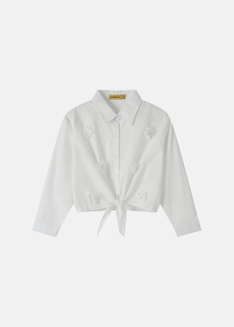 12.50 JODقميص اطفال بناتي, مزين بالورود, ياقة مثنية, ازرار من الامام للاغلاق, اكمام طويلة مع معصم ضيق, ربطة من الامام, انيق وعصري
