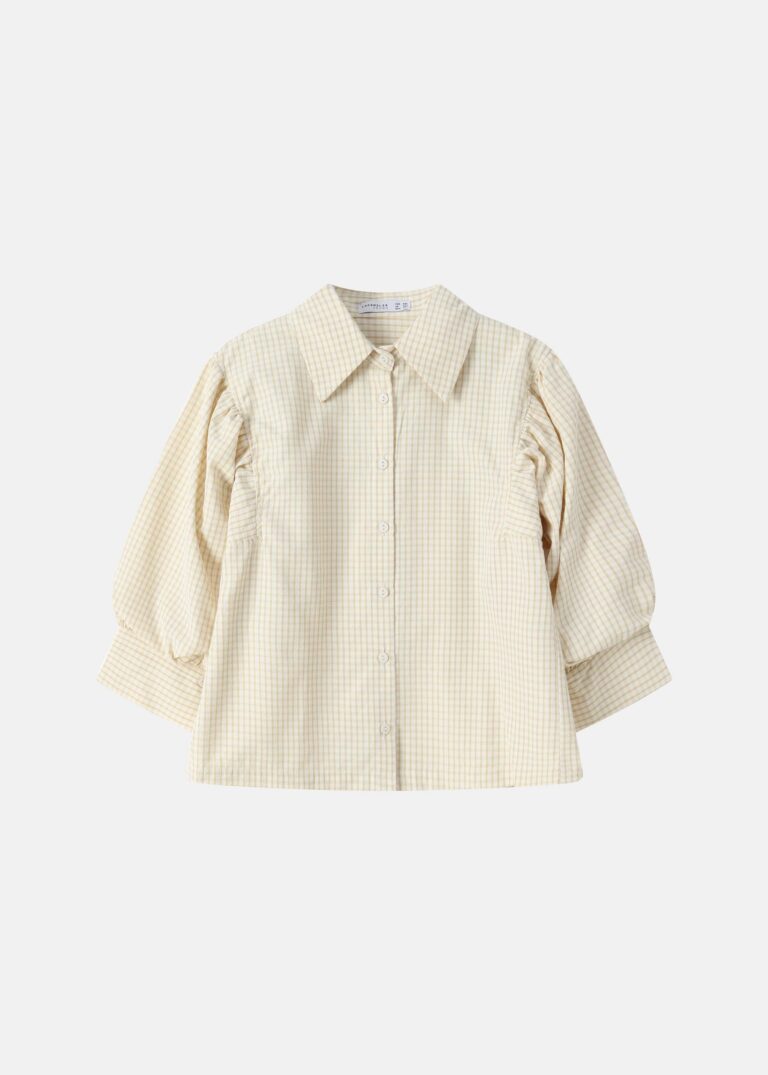 15.00 JODقميص بناتي, بنقش المربعات, ياقة مثنية, ازرار من الامام للاغلاق, اكمام طويلة مع معصم عريض, انيق وعصري