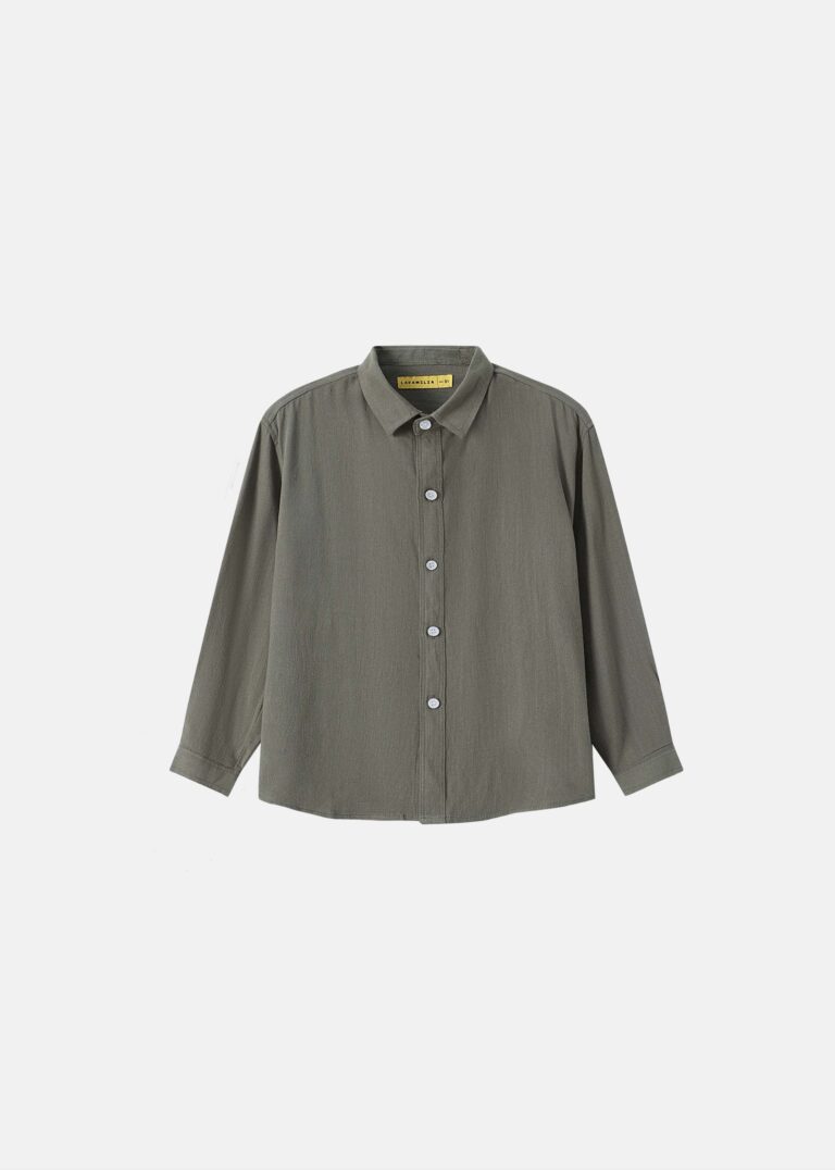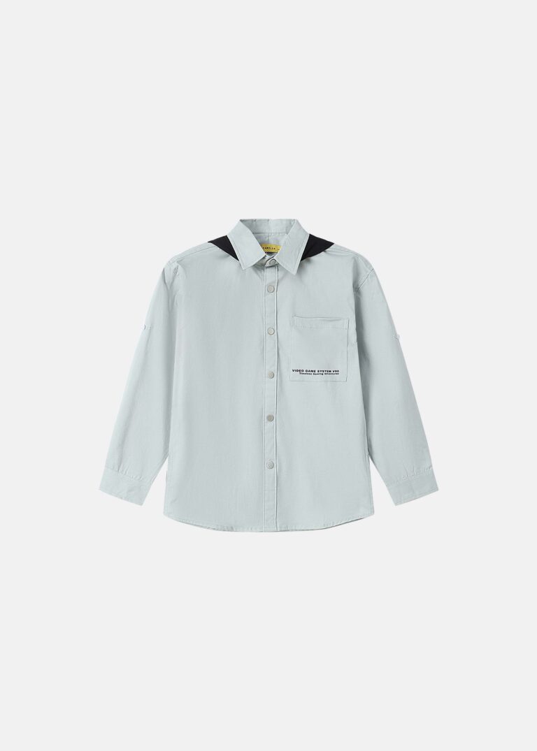 12.50 JODقميص اطفال ولادي, سادة, ياقة مثنية, ازرار من الامام للاغلاق, اكمام طويلة, معصم ضيق مع زر, جيوب من الامام, انيق وعصري