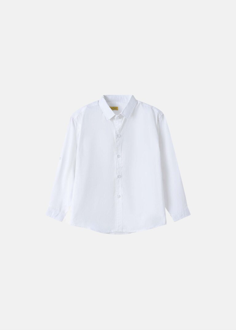 9.95 JODقميص اطفال ولادي, سادة, ياقة مثنية, ازرار من الامام للاغلاق, اكمام طويلة, معصم ضيق مع زر, انيق وعصري