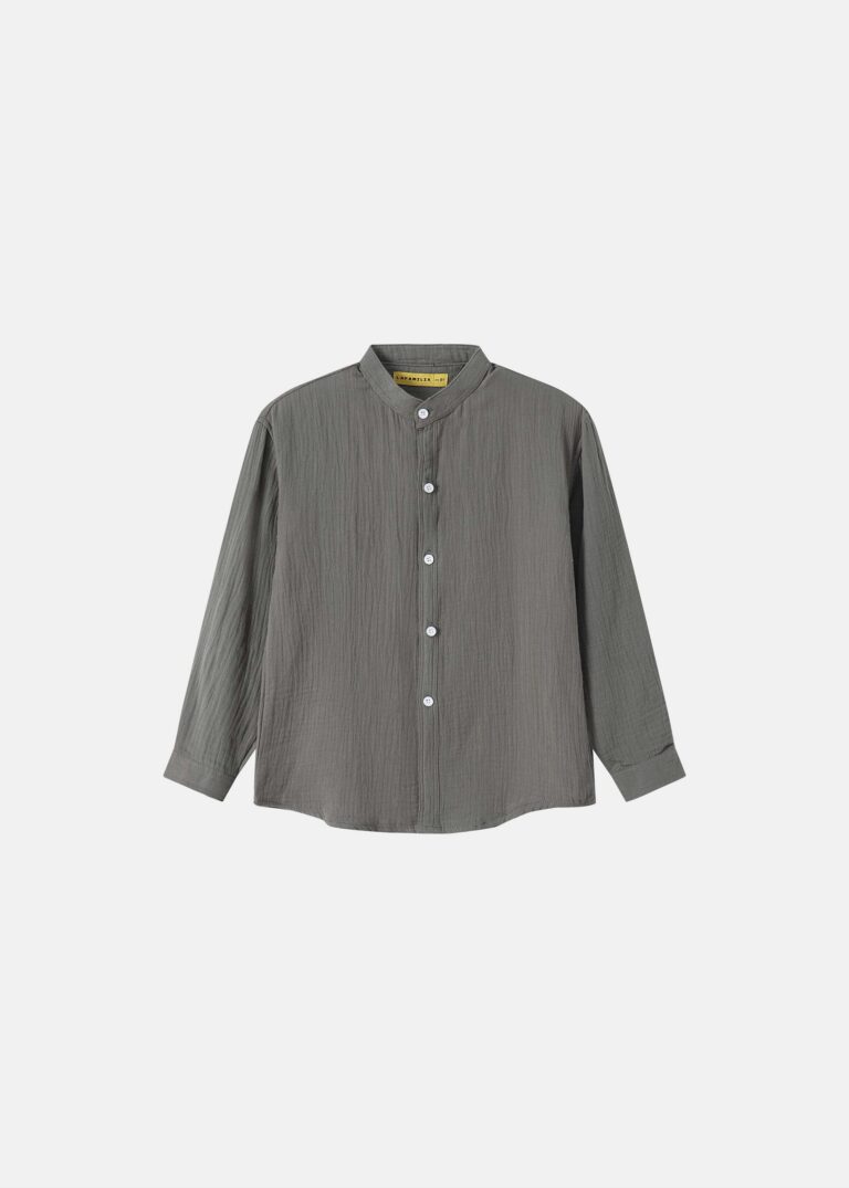 9.95 JODقميص اطفال ولادي, نسيج مجعد, ياقة مرتفعة, اكمام طويلة مع معصم ضيق, ازرار من الامام للاغلاق, انيق وعصري