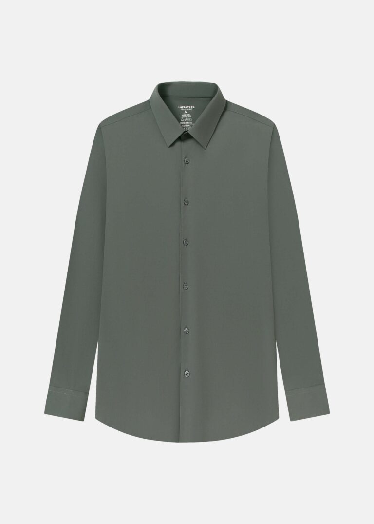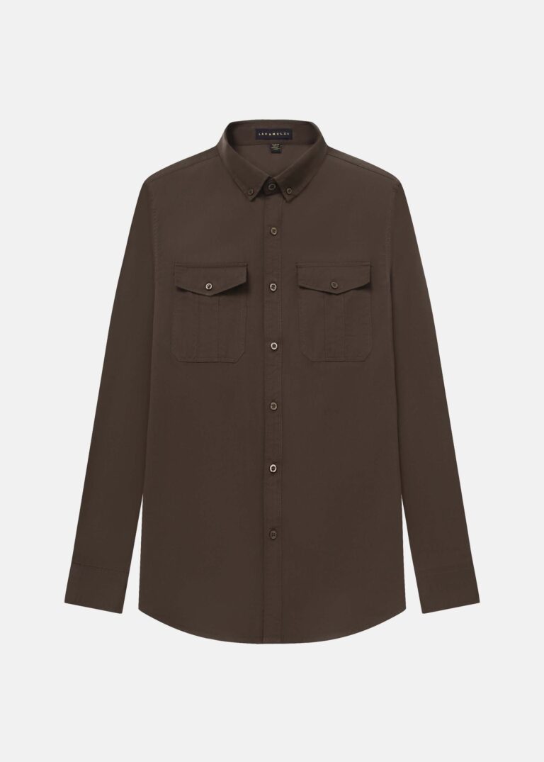12.50 JODقميص رجالي, سادة, ياقة مثنية, ازرار من الامام للاغلاق, اكمام طويلة مع معصم ضيق, جيوب من الامام مع ازرار, انيق وعصري