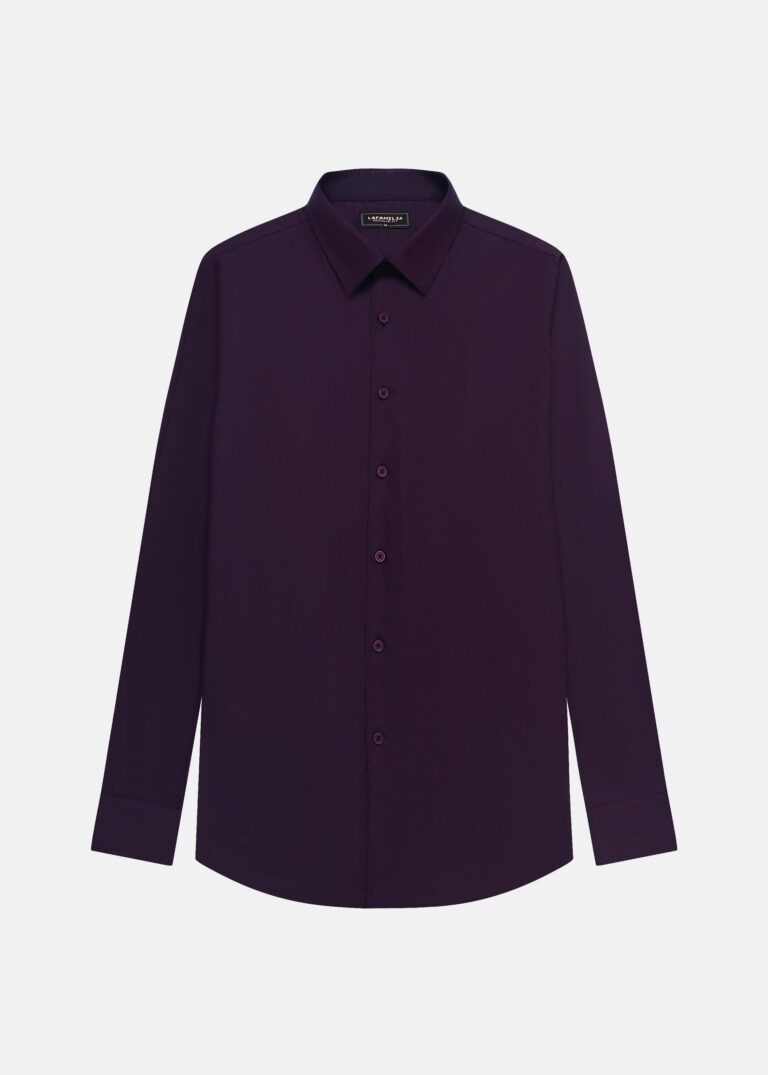 12.50 JODقميص رجالي, سادة, ياقة مثنية, ازرار من الامام للاغلاق, اكمام طويلة مع معصم ضيق, انيق وعصري