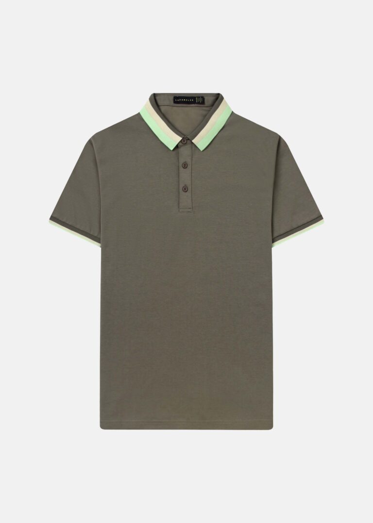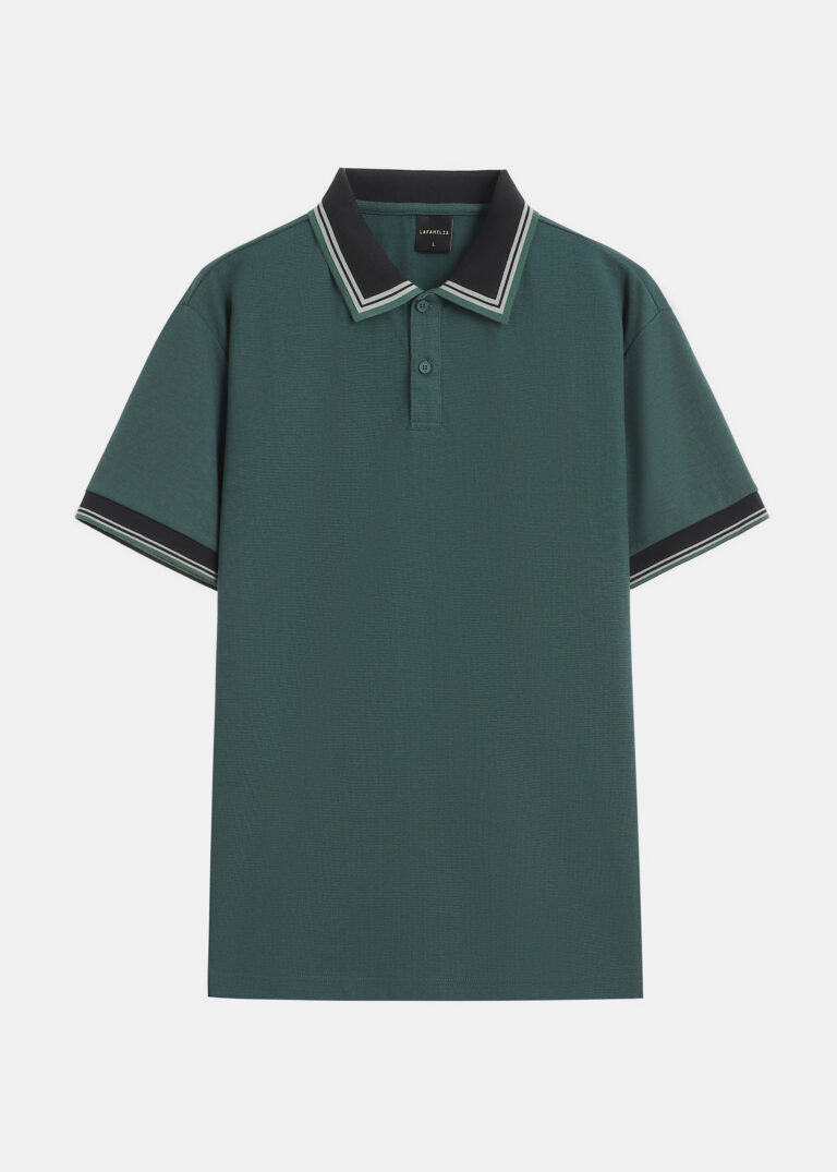 13.50 JODMen polo shirt, contrast collar and cuffs, striped rolled collar with front buttons, striped short sleeves, unique and modern