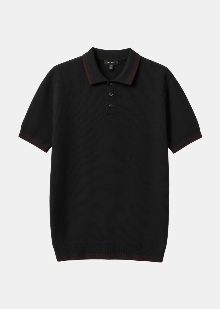 17.50 JODMen polo shirt, textured, rolled collar with front buttons, short sleeves, tipping at the collar and sleeves, unique and modern
