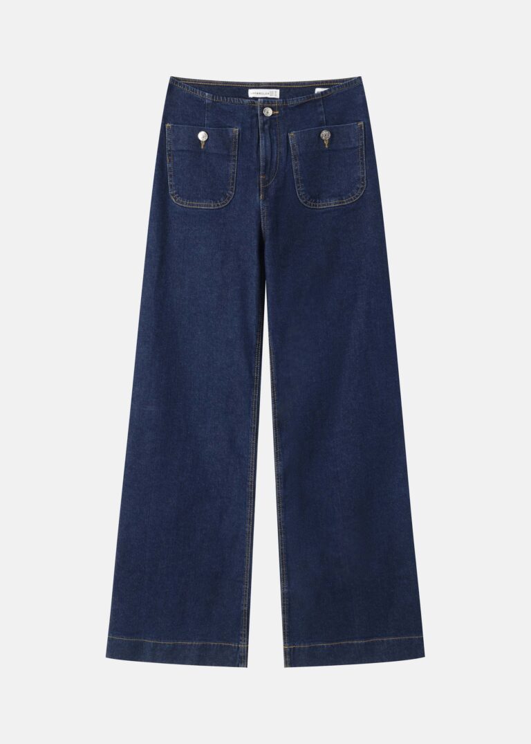 25.00 JODWomen trouser, denim, wide-leg, front button and zipper clousre, front and back pockets, unique and modern