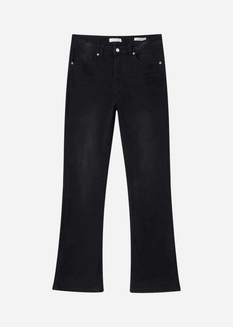 15.00 JODWomen trouser, jeans, flare-cut, pockets from the front and back, front button and zipper clousre, seam details, unique and practical