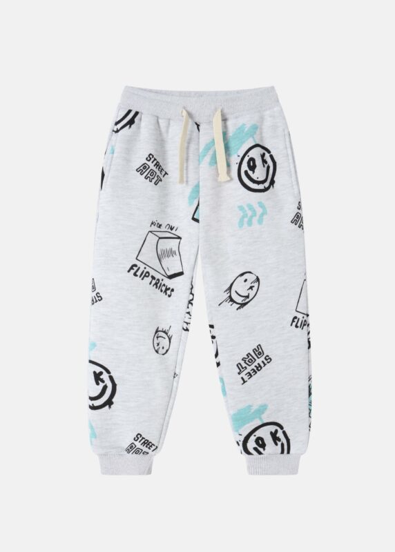 Baby boy pajama, two-pieces, “Brooklyn” printed, blouse, color-block, round neck, long sleeves, trouser, plain, elastic waist, elastic ankle, practical and comfortable