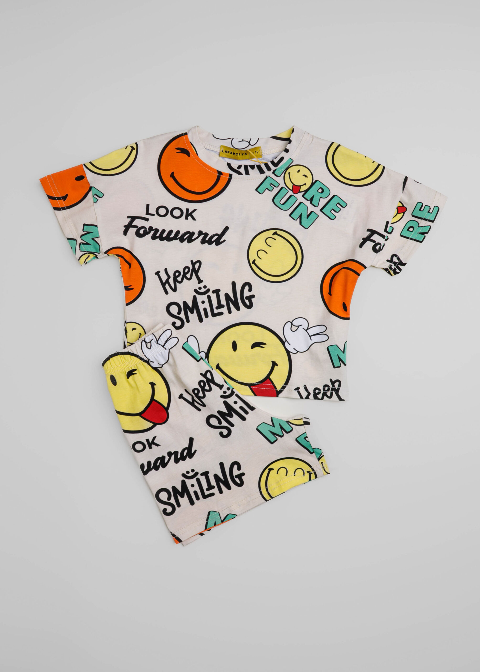 Baby boy pajama, two-pieces, t-shirt, drawings printed, round neck, short sleeves, short, elastic waist, comfortable and practical