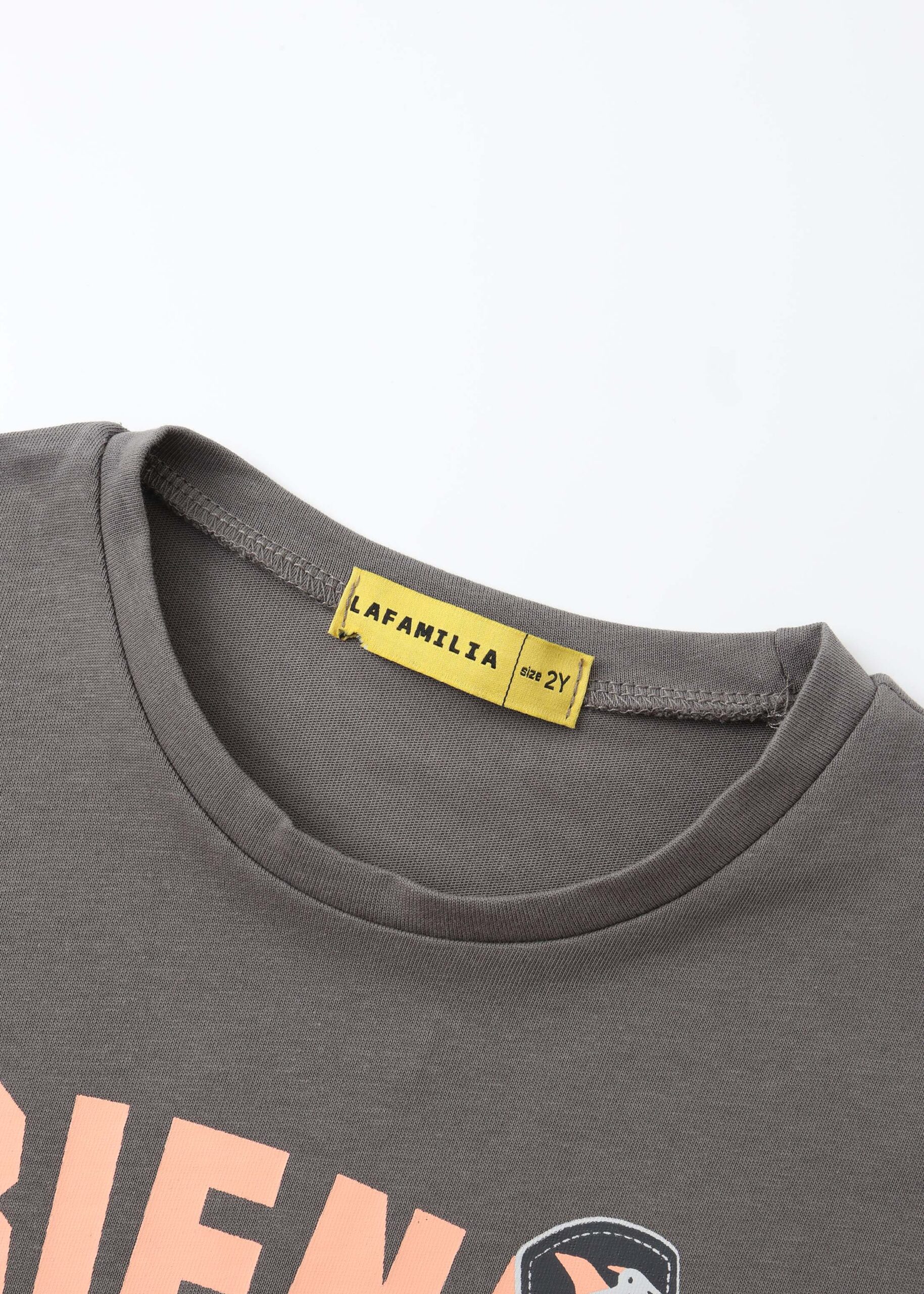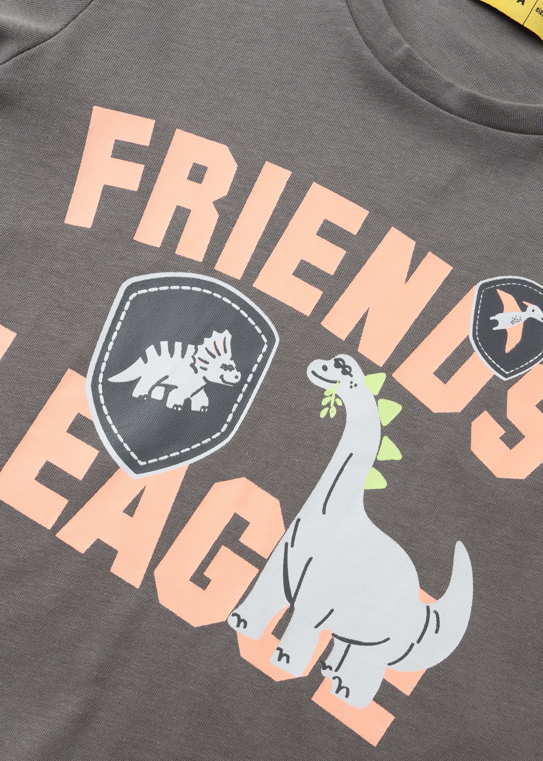 Baby boy blouse, “Friends League” with dinosaurs printed from the front, round neck, long sleeves, practical and modern