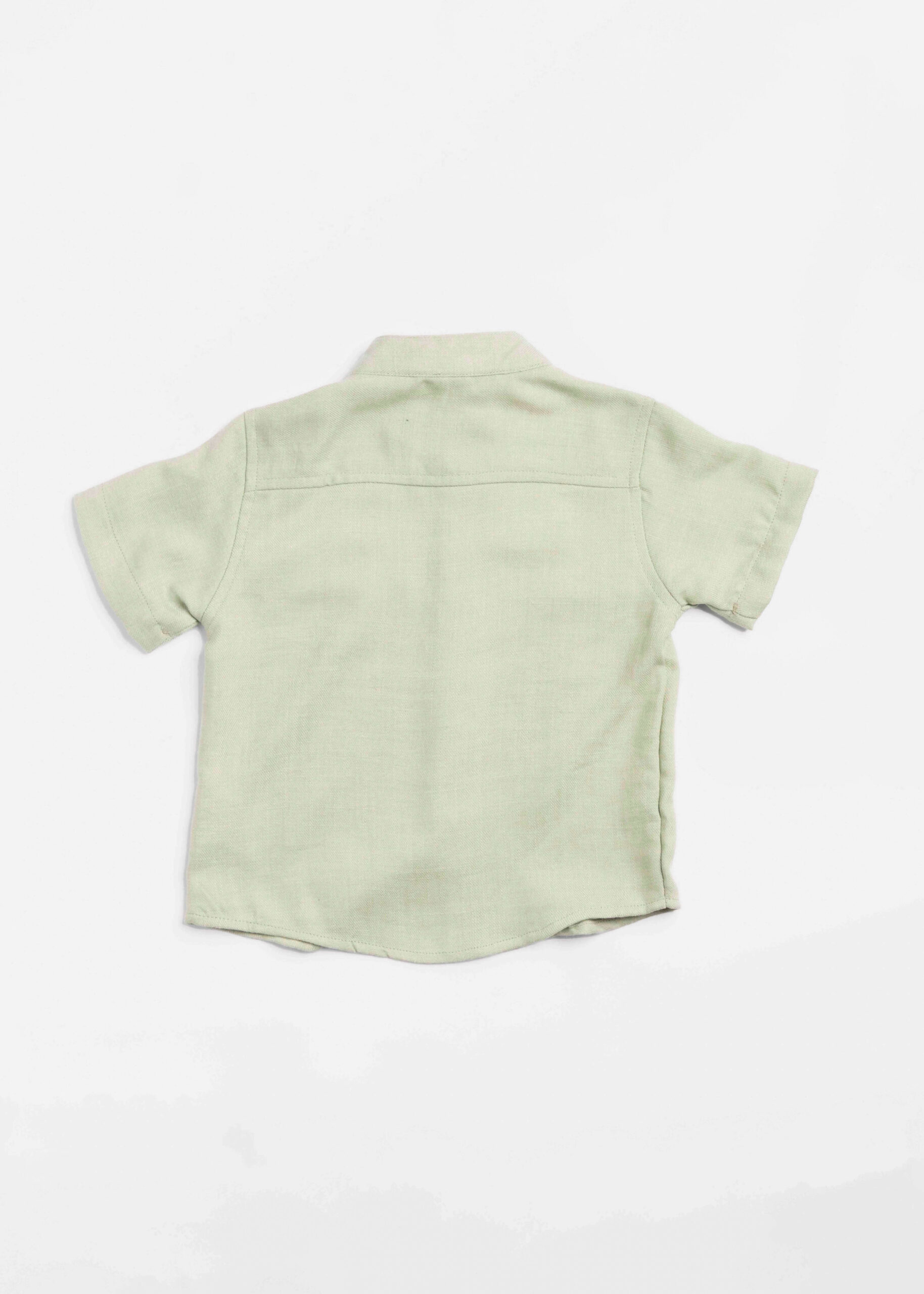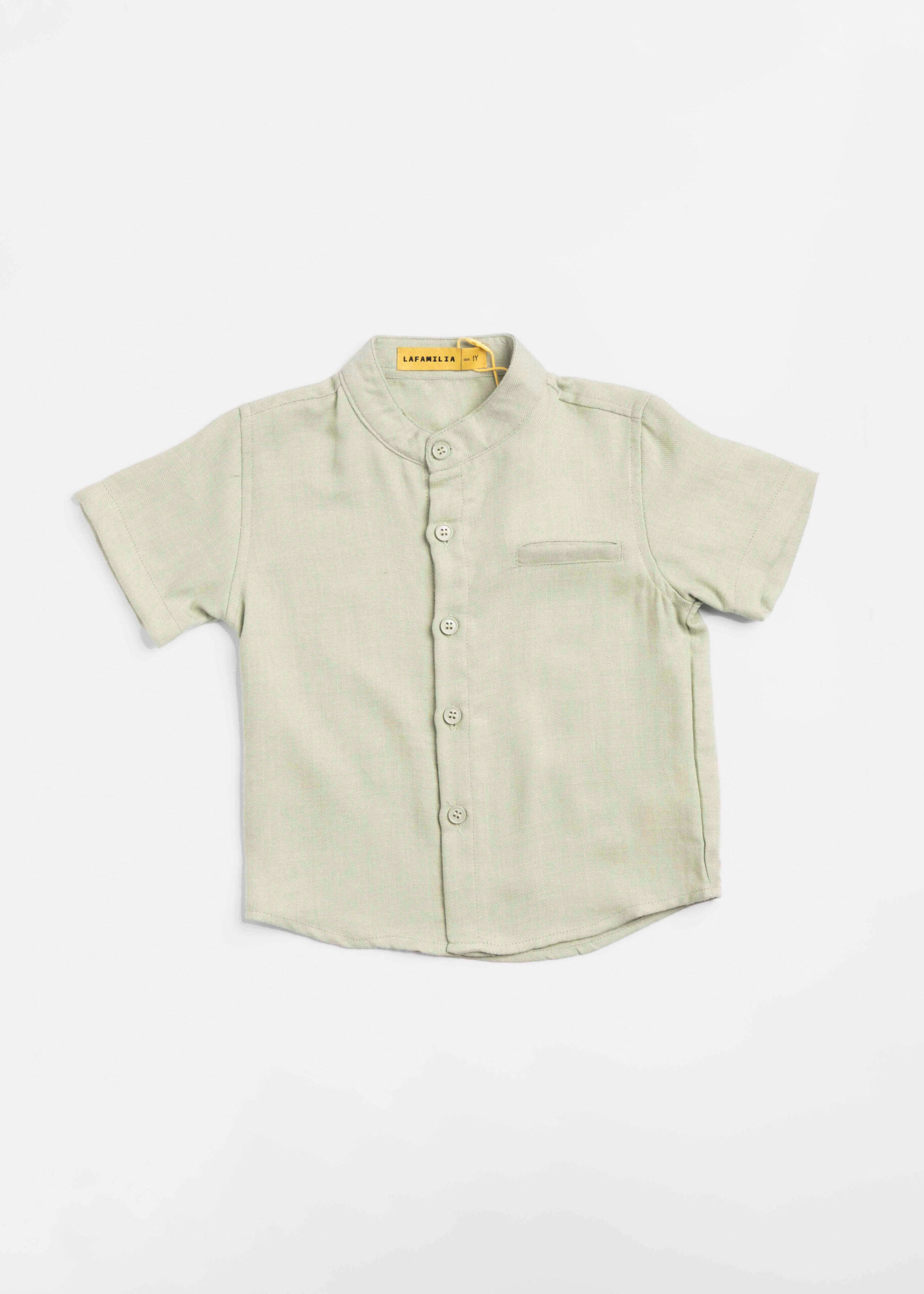 Baby Boy shirt, linen, plain, round neck, front buttons to close, short sleeves, front pocket, comfortable and unique