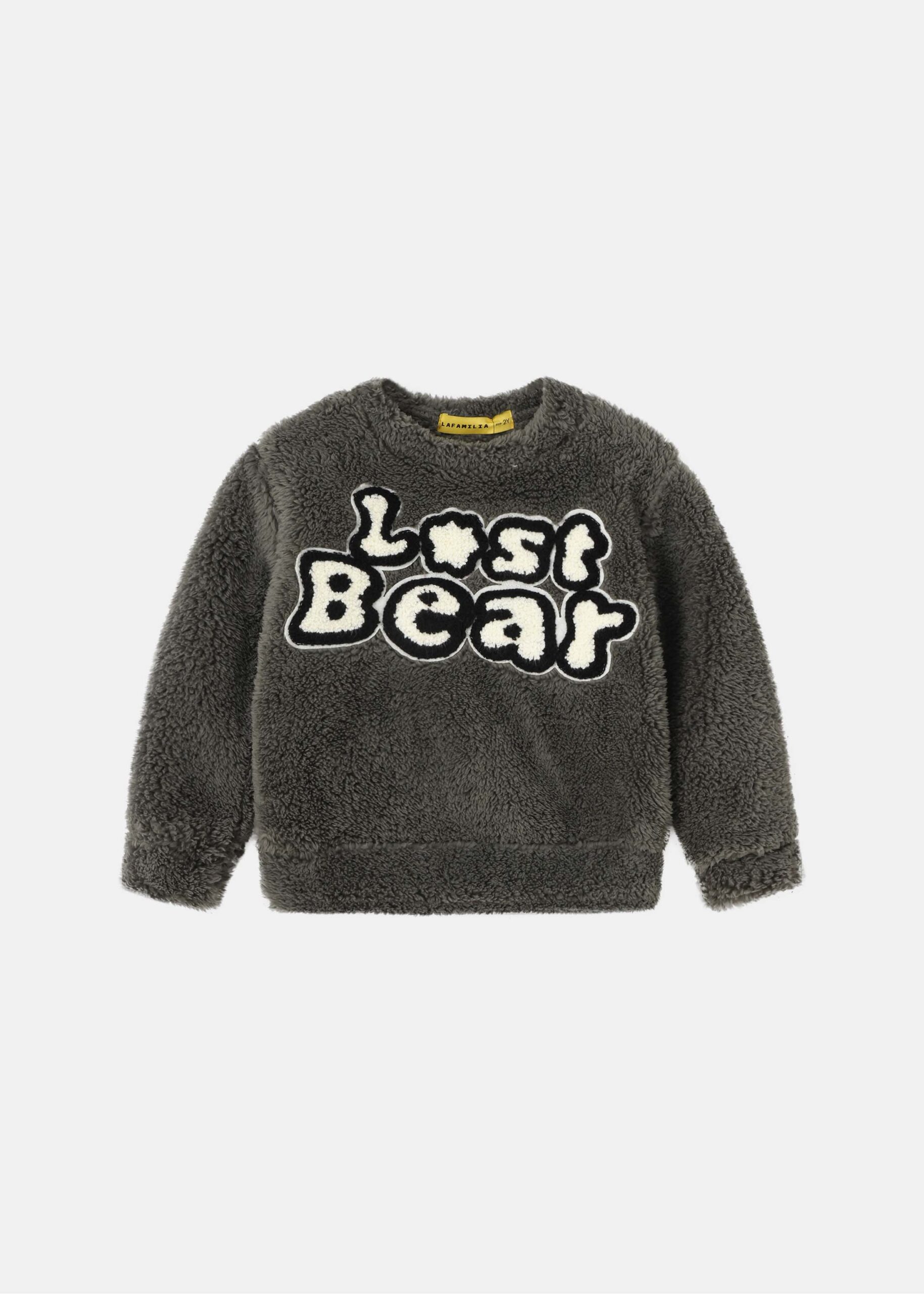 Baby boy pajama, two-pieces, “Lost Bear” printed, blouse, round neck, long sleeves, trouser, plain, elastic waist, elastic ankle, practical and comfortable