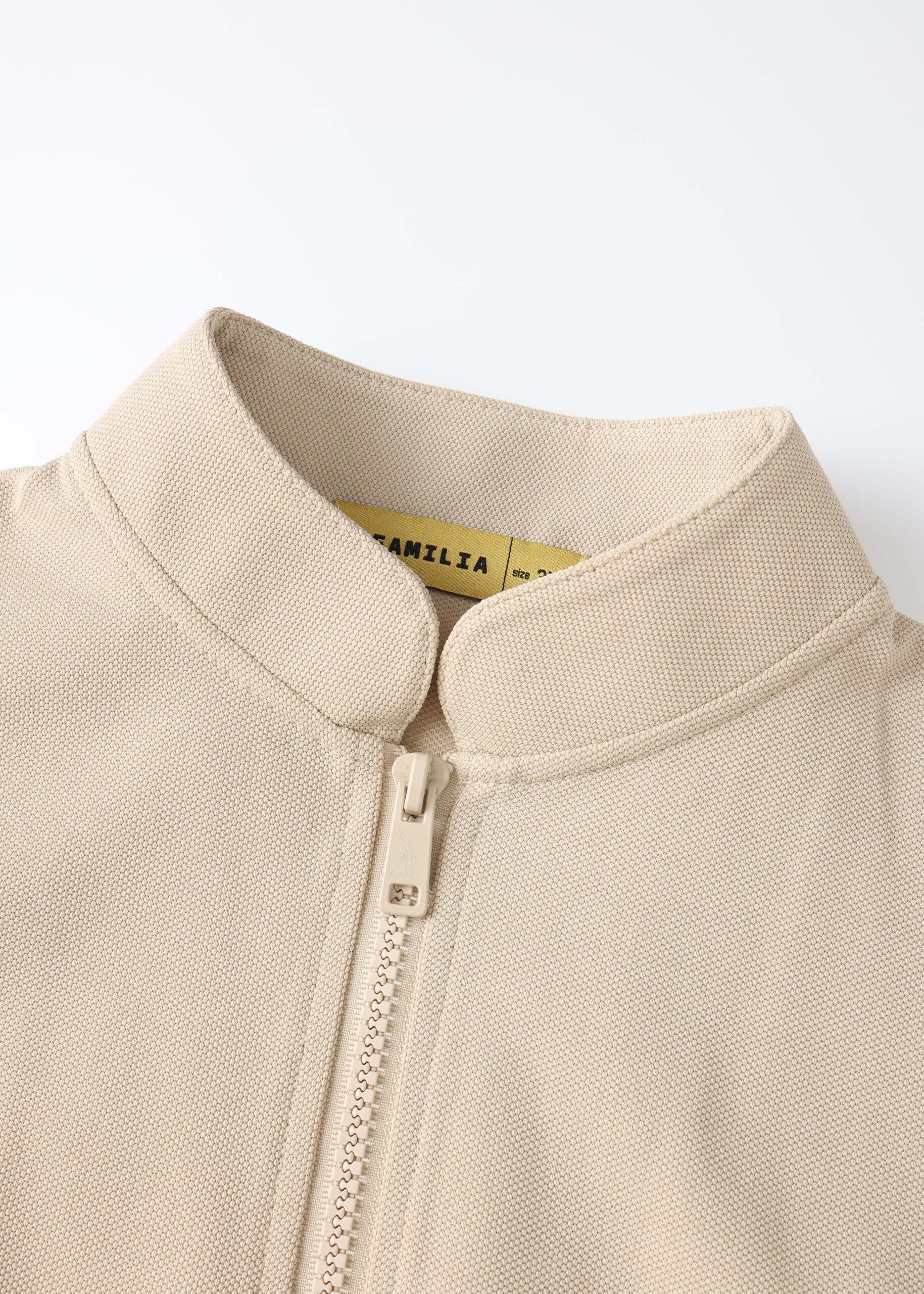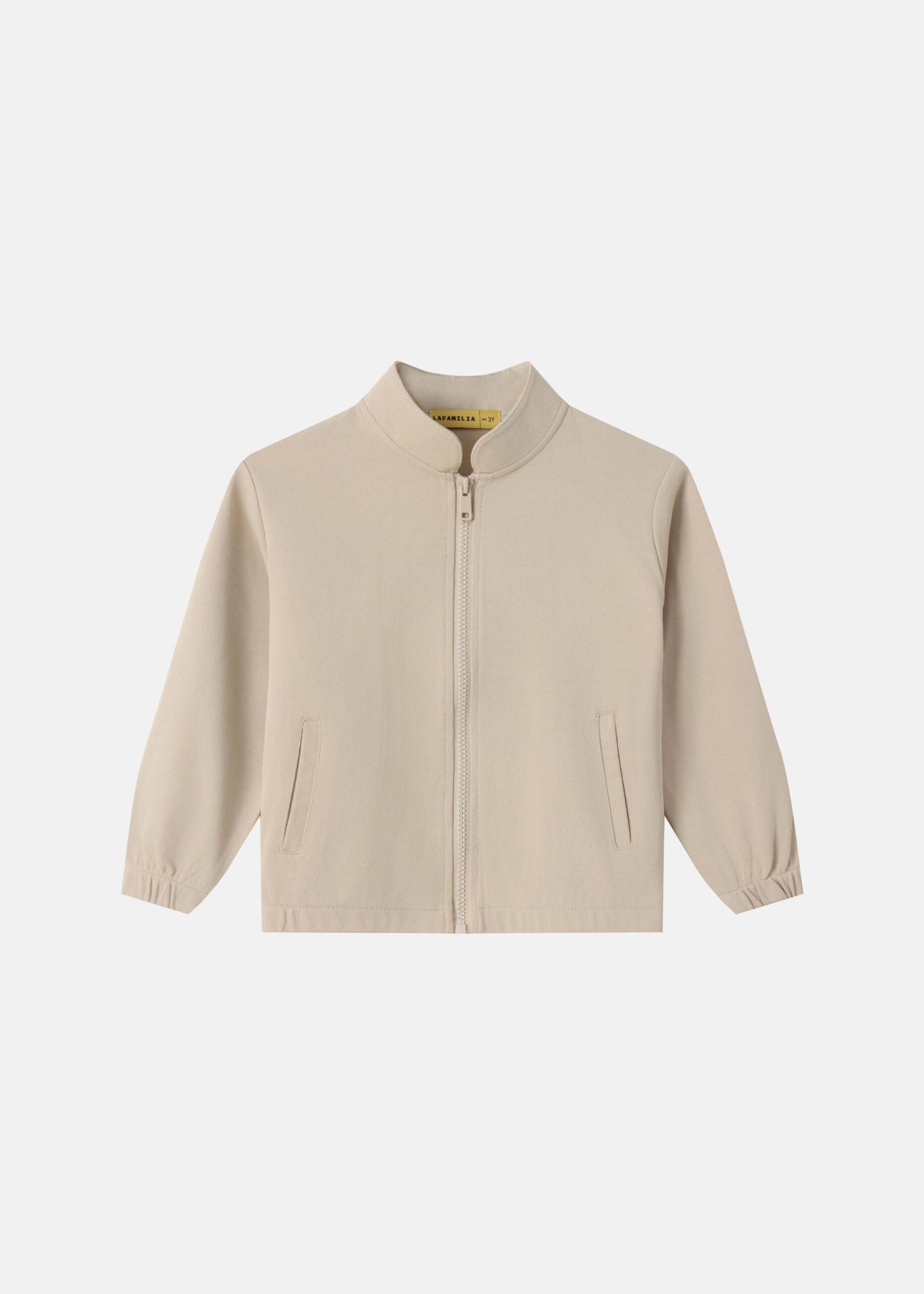Baby boy jacket, plain, round neck, front zipper closure, long sleeves with elastic cuff, front pockets, unique and practical