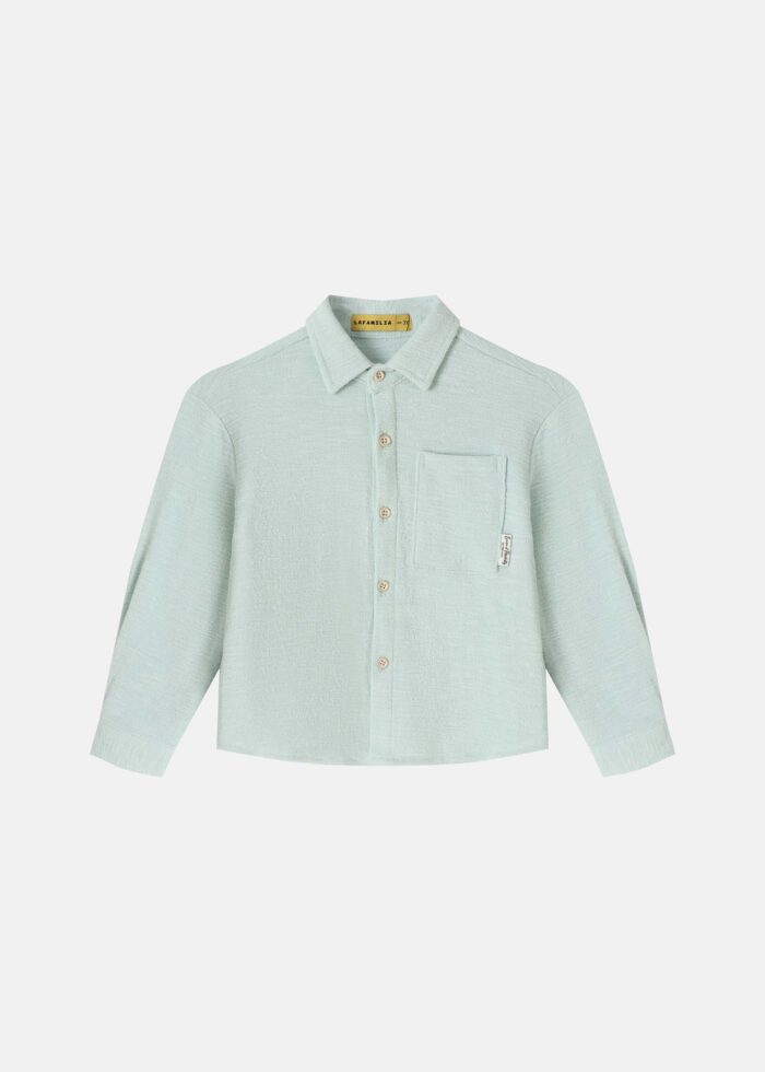 Baby boy shirt, plain, rolled collar, front buttons to close, long sleeves with tight cuff, chest pocket, unique and practical