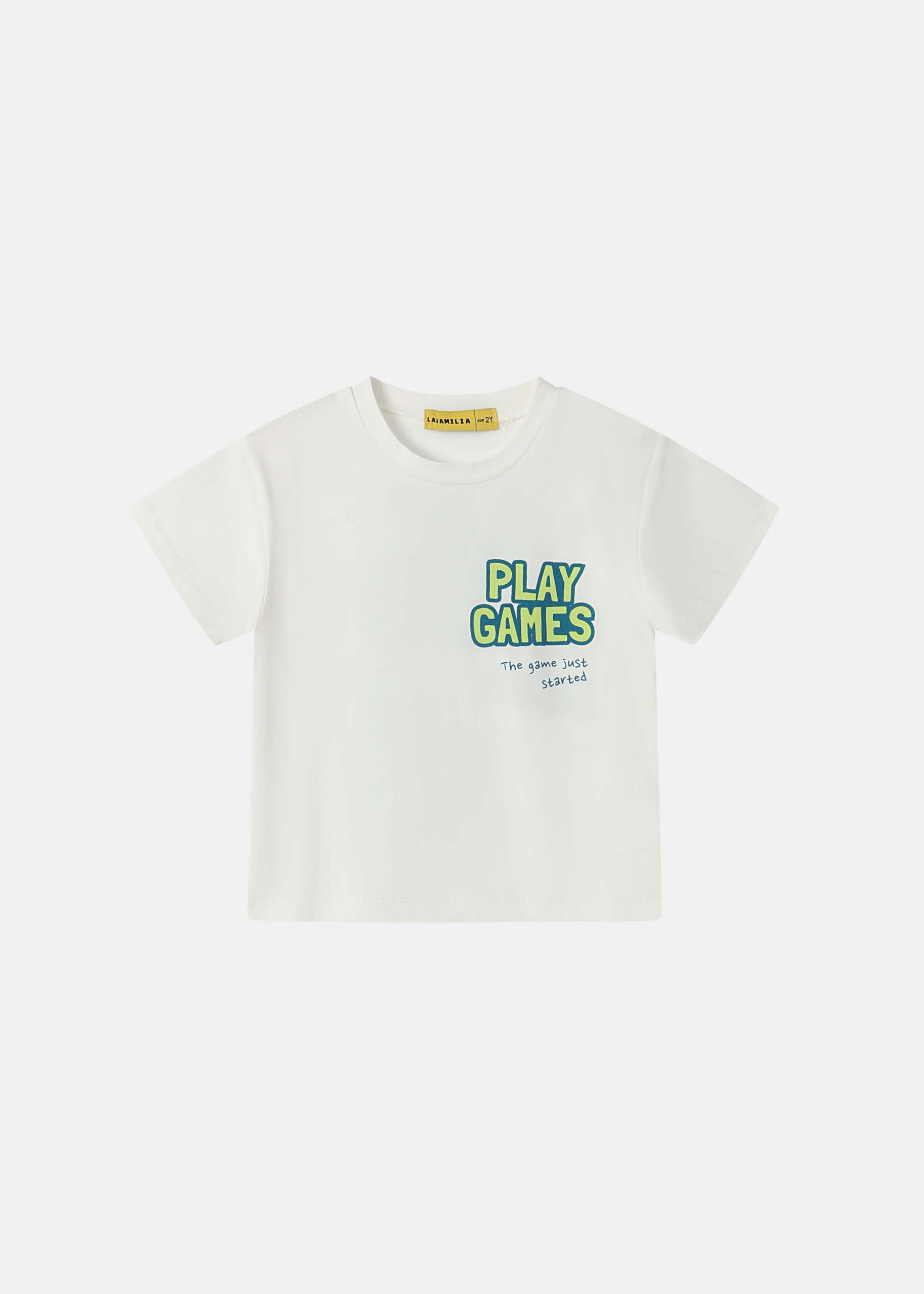 Baby boy t-shirt, “Play Games” printed from the front and back, round neck, short sleeves, practical and modern