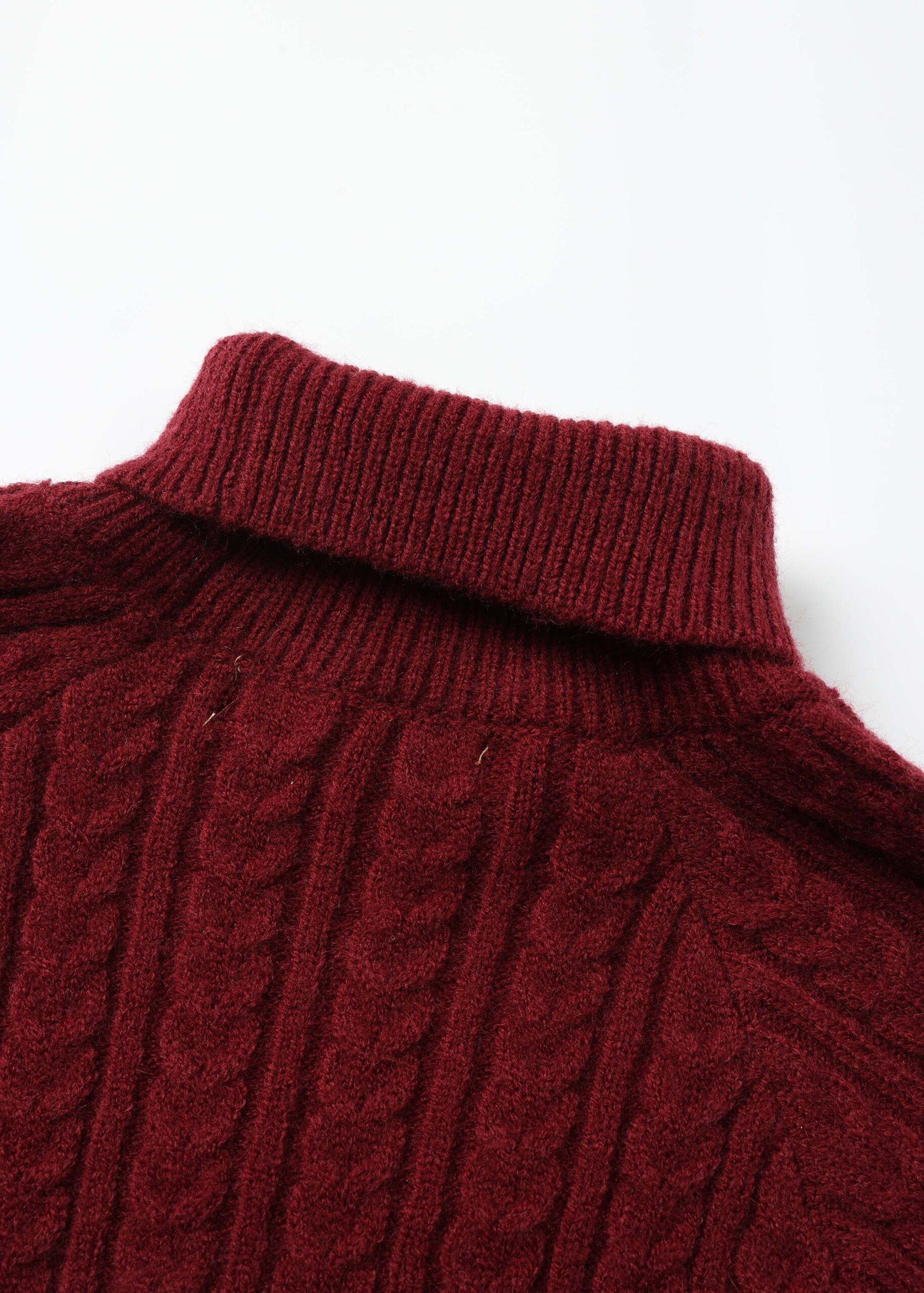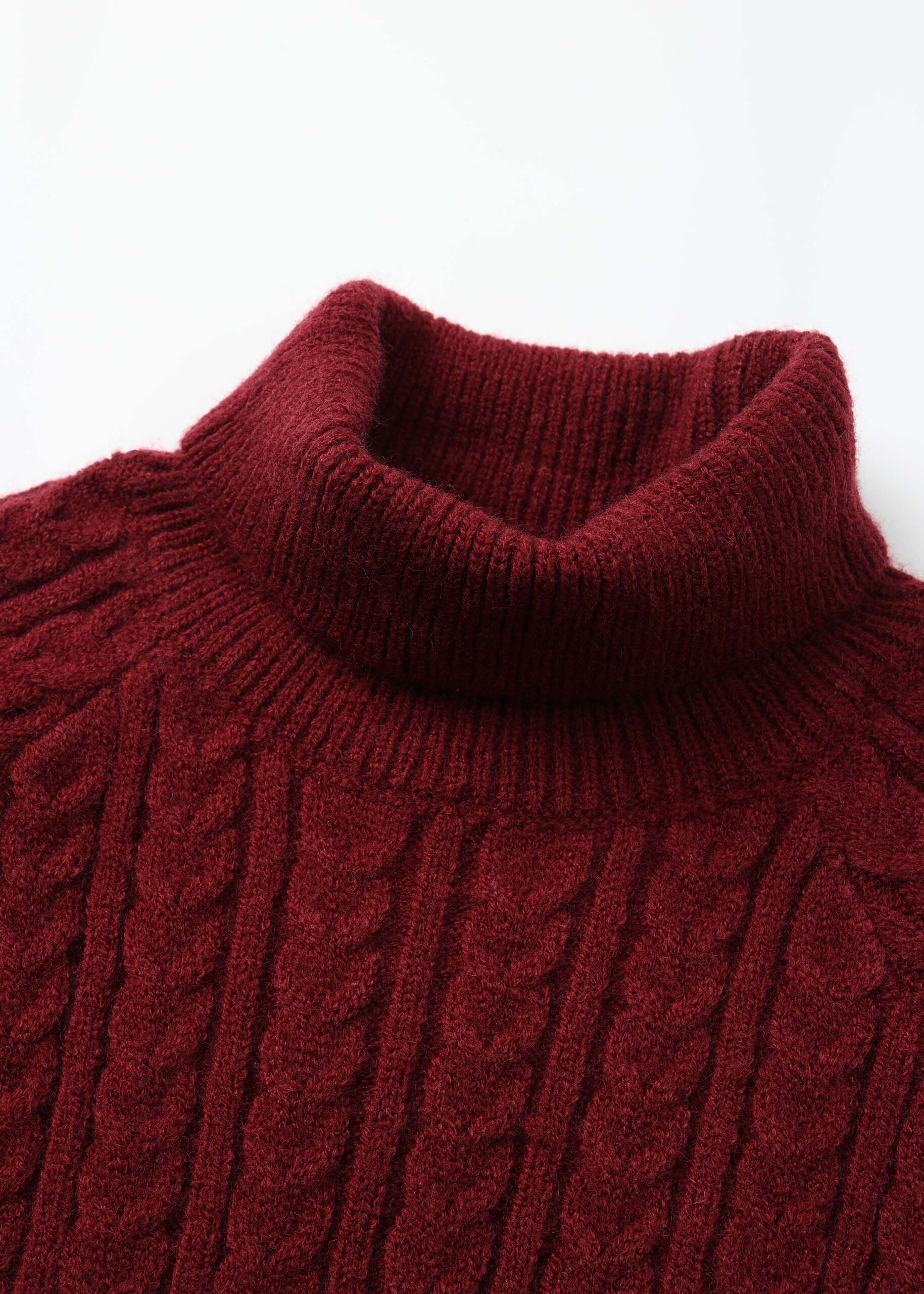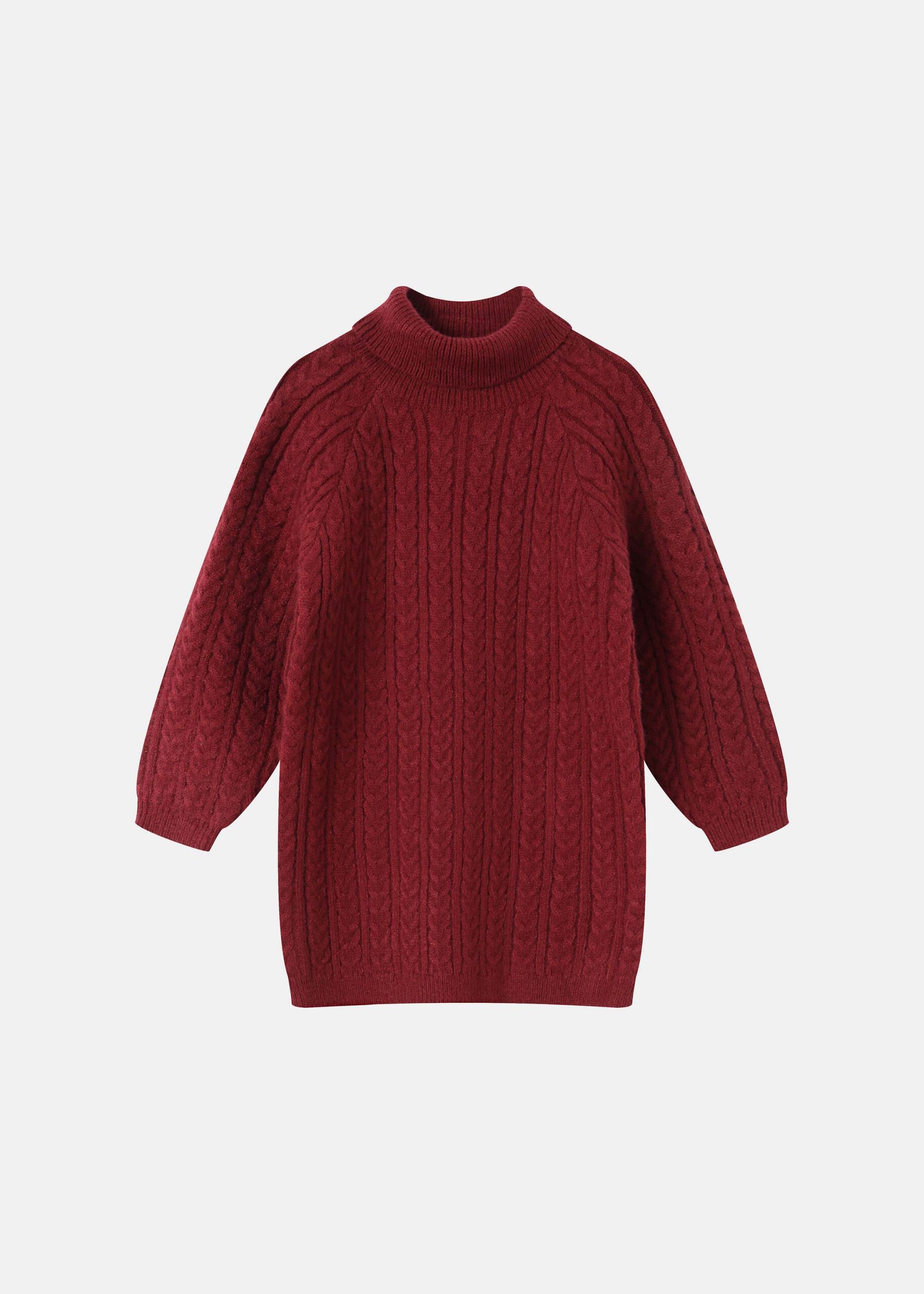 Baby girl dress, short, braided patterned, high rolled neck, long sleeves, unique and warm