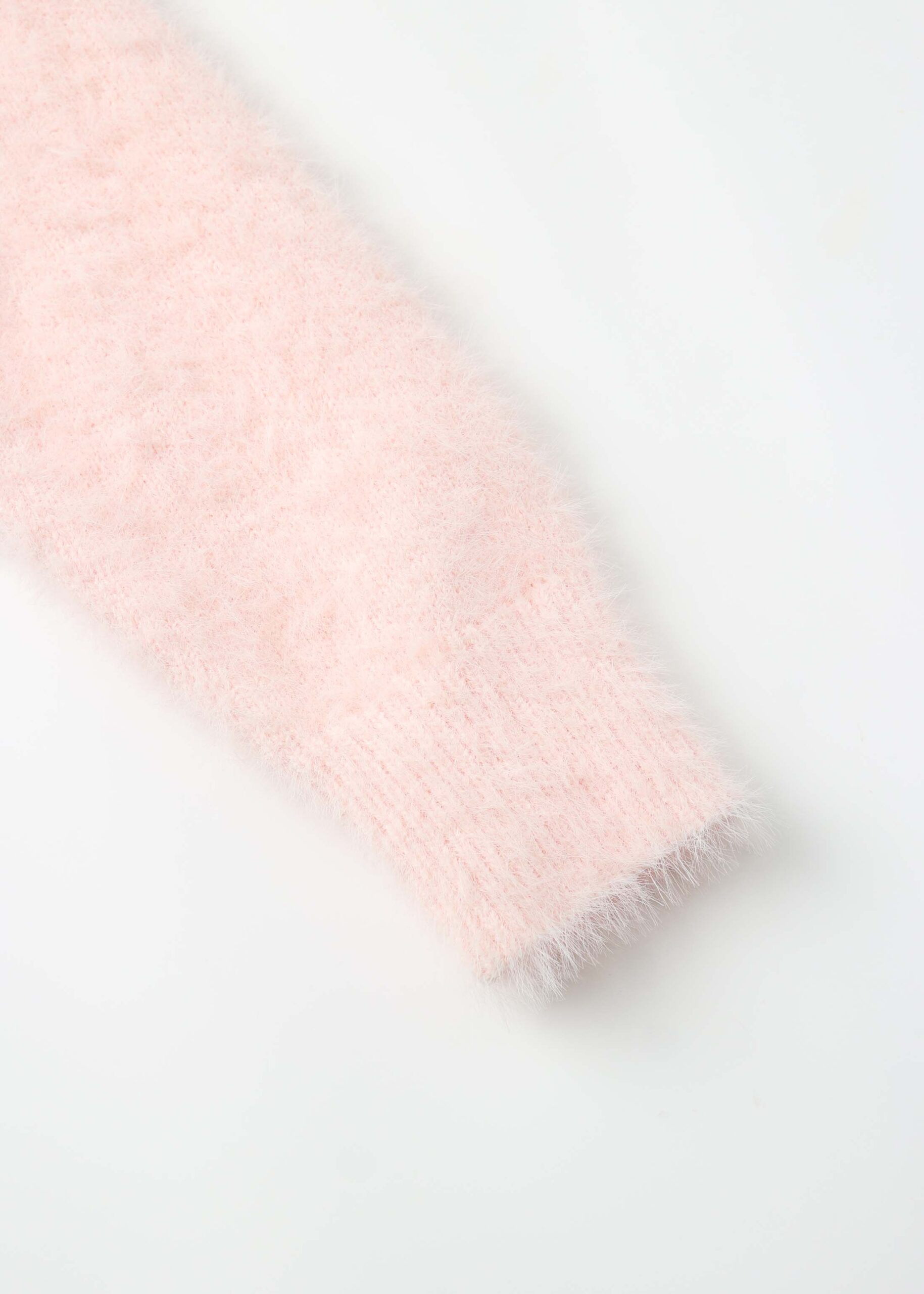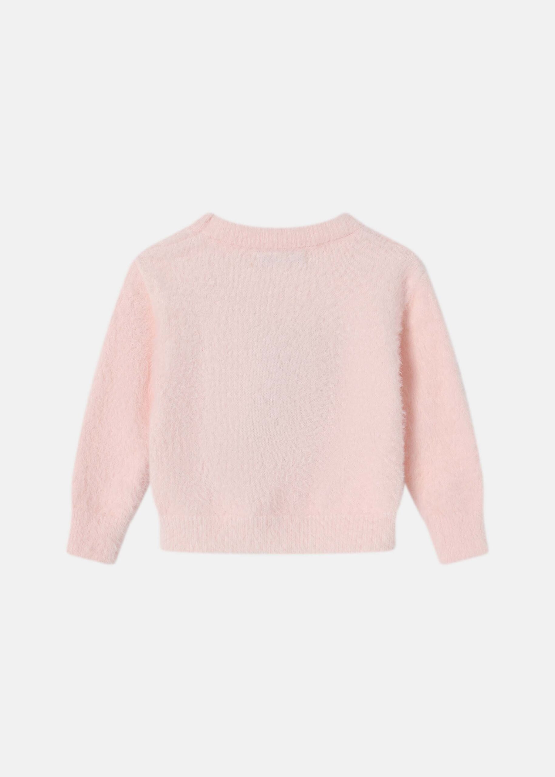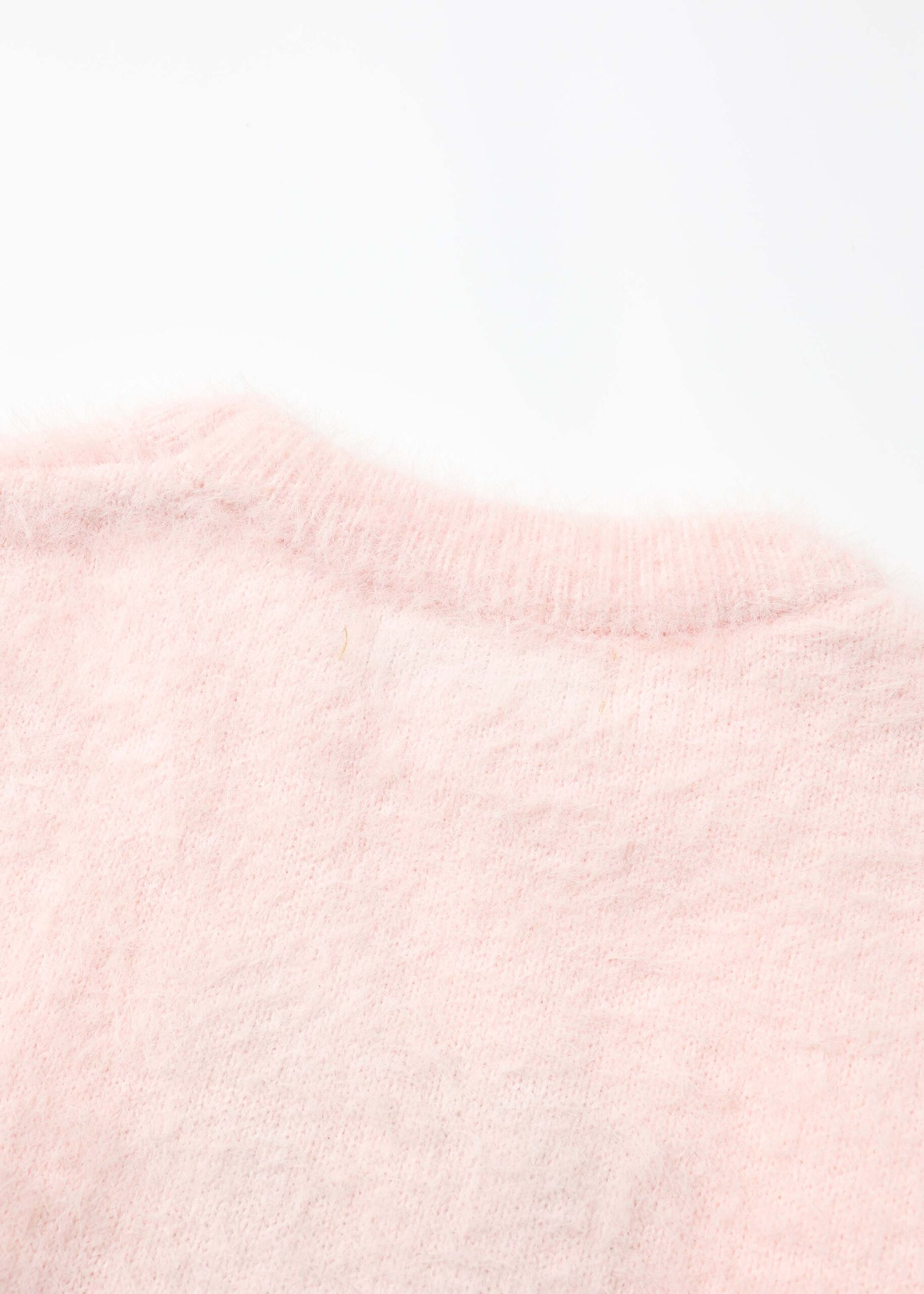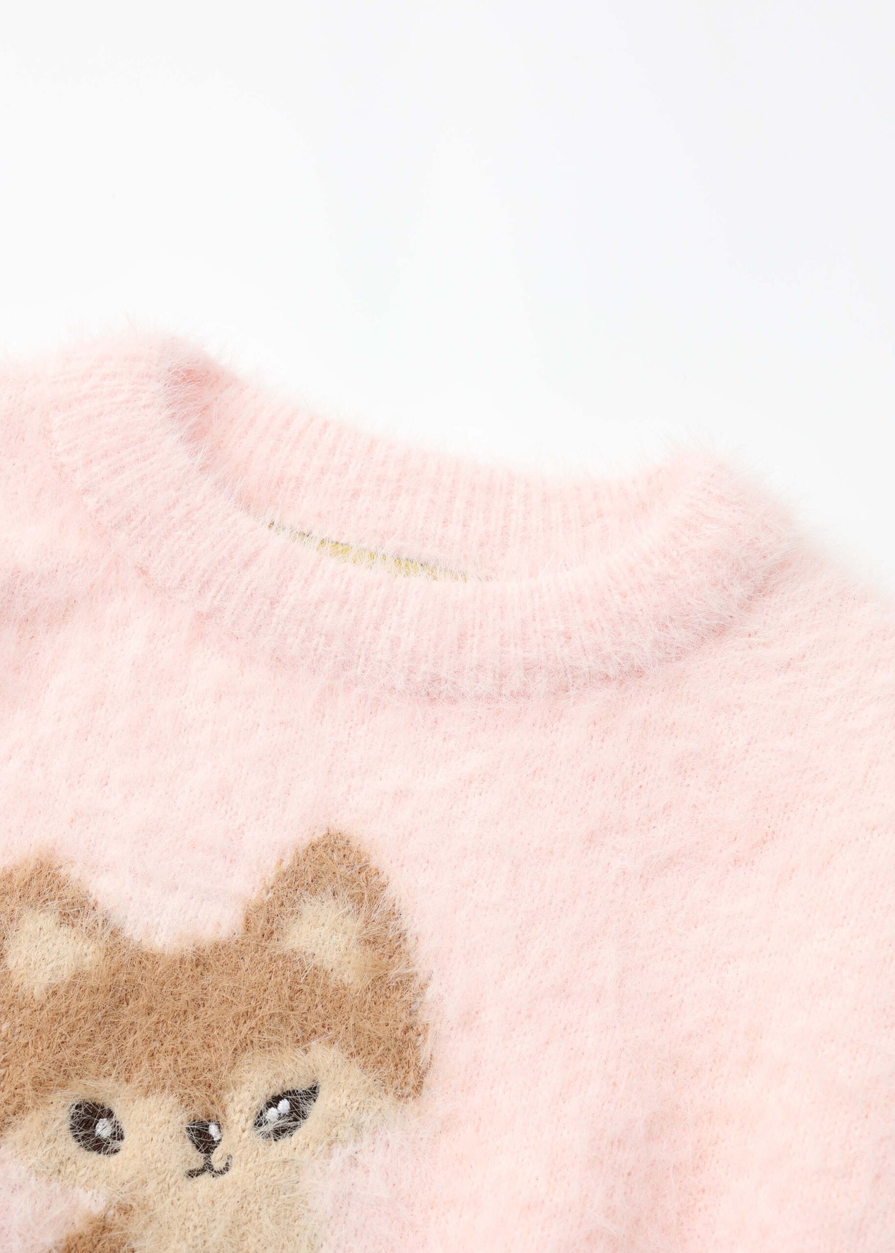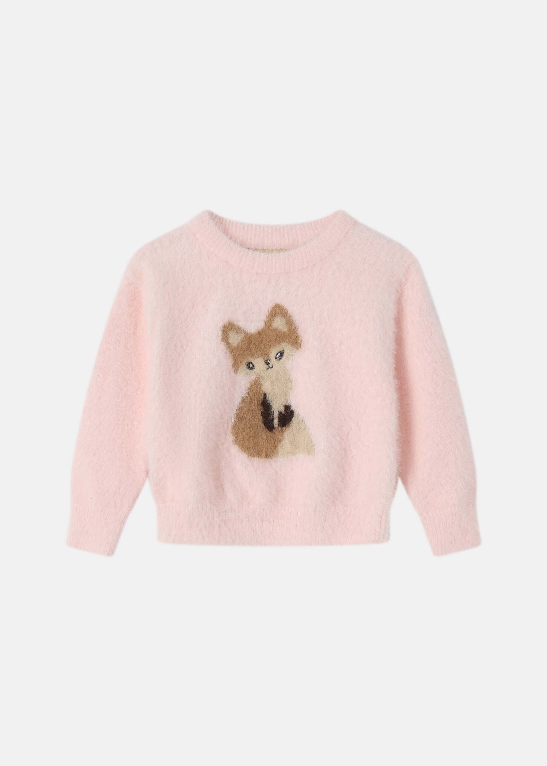 Baby girl blouse, hairy knitted fabric, fox printed from the front, round neck, long sleeves, unique and warm