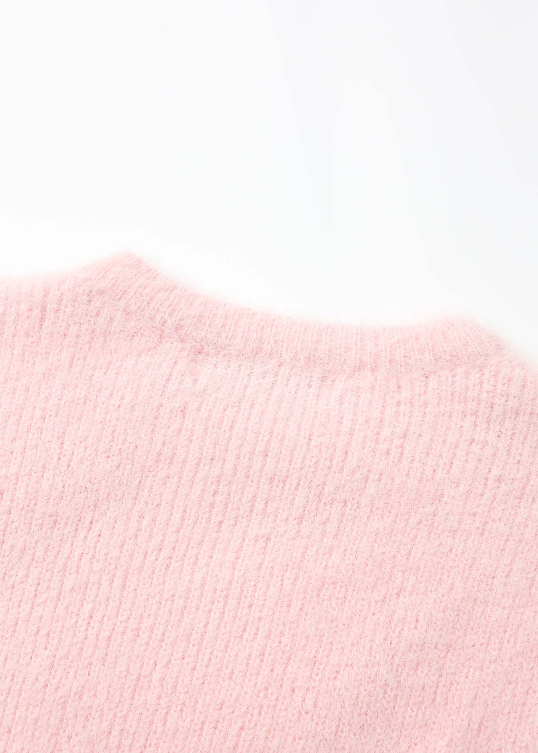 Baby girl blouse, hairy-knitted fabric, plain, round neck, long sleeves, unique and warm